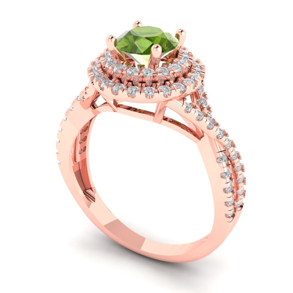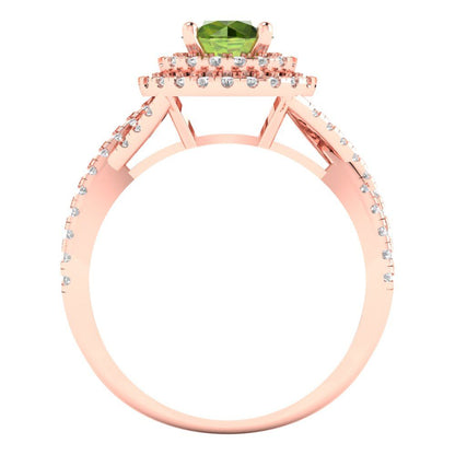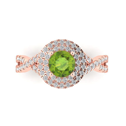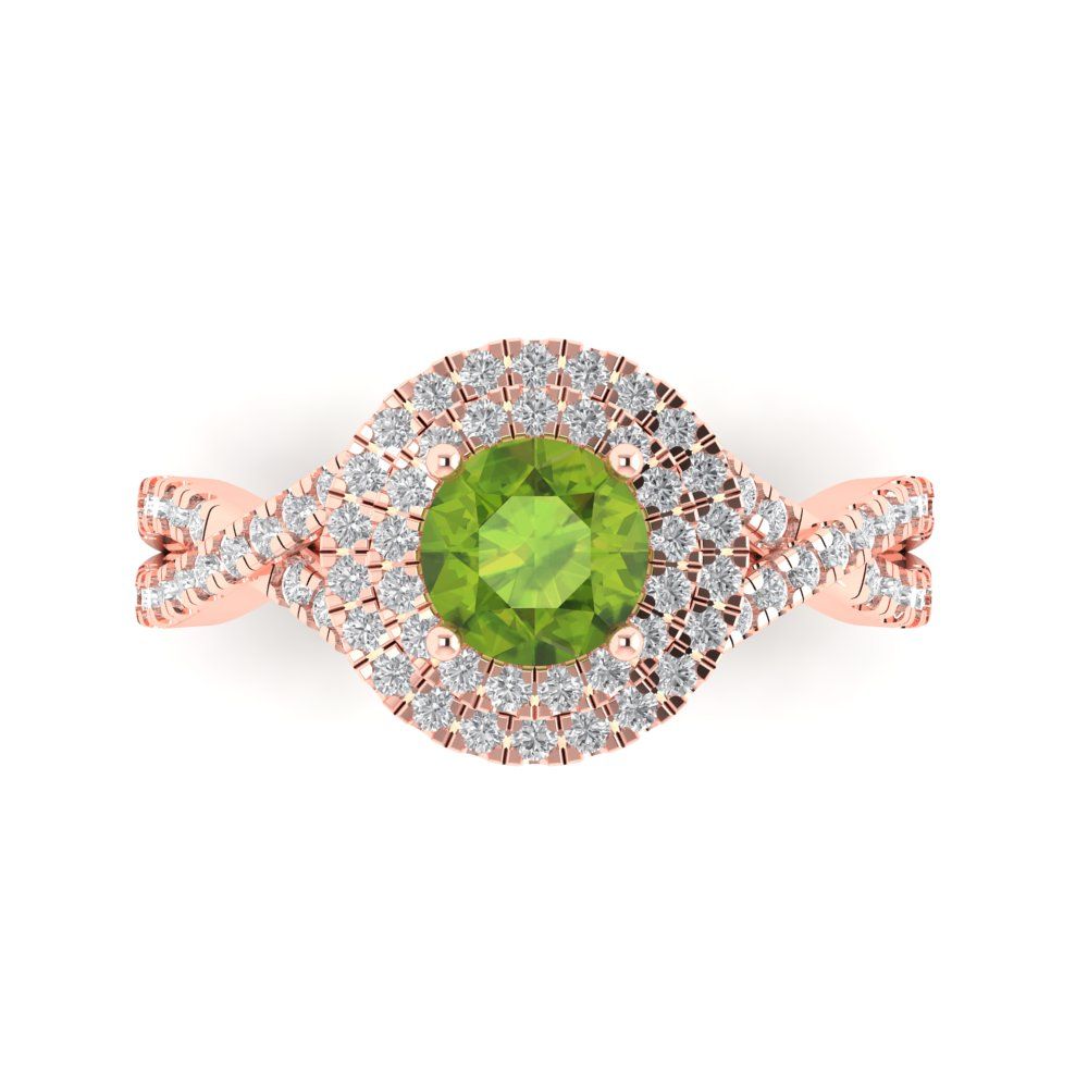 1.3125 cttw Natural Peridot Solitaire with Zirconia Simulated Diamond Accents Engagement Ring - Solid Gold (Round Cut,6mm)