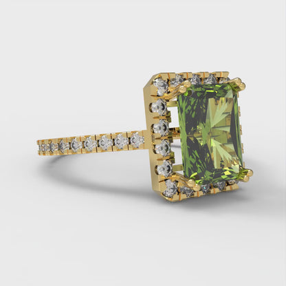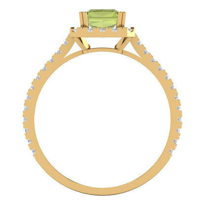 1.86 cttw Natural Peridot Solitaire with Zirconia Simulated Diamond Accents Engagement Ring - Solid Gold (Emerald Cut,7.5x5.5mm)