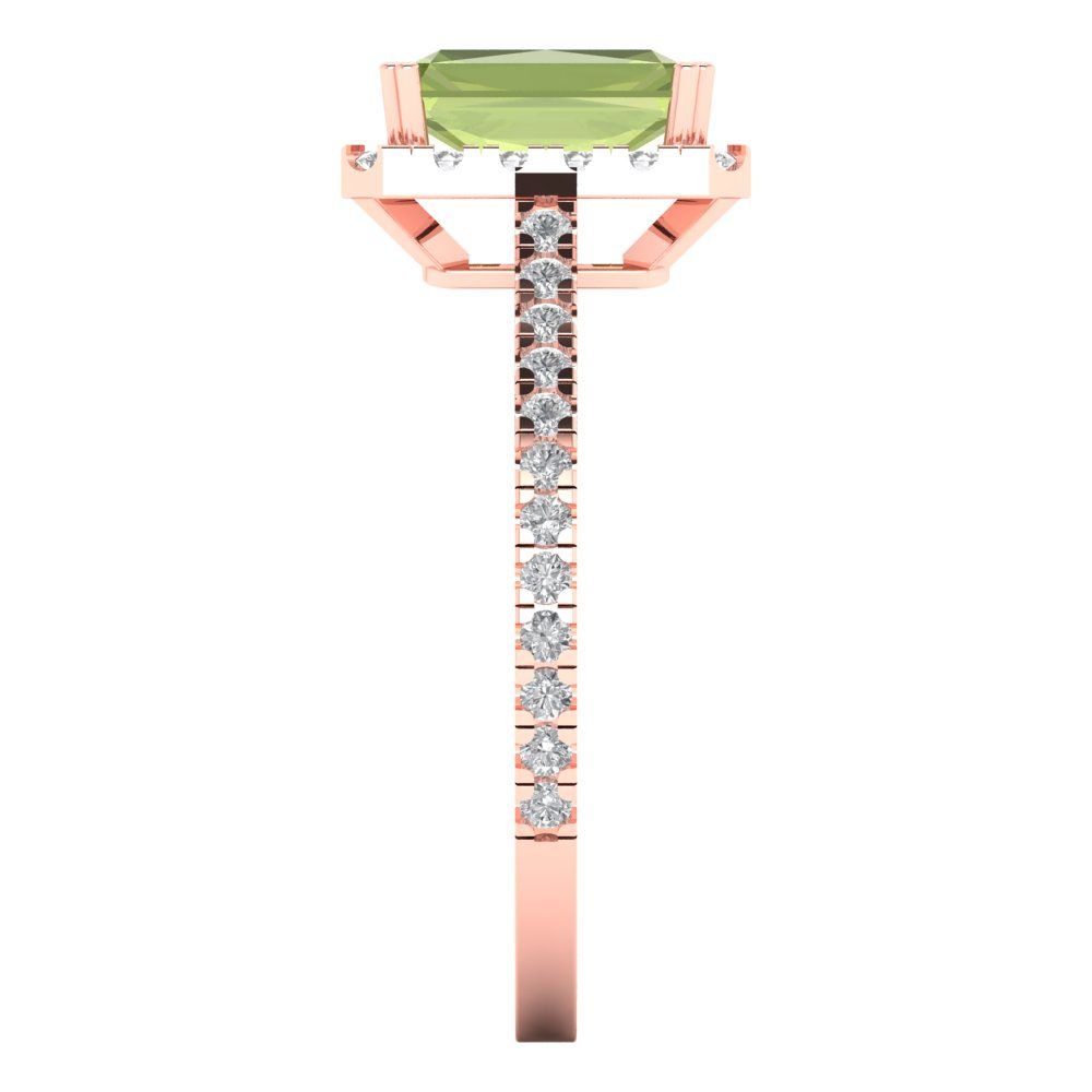 1.86 cttw Natural Peridot Solitaire with Zirconia Simulated Diamond Accents Engagement Ring - Solid Gold (Emerald Cut,7.5x5.5mm)