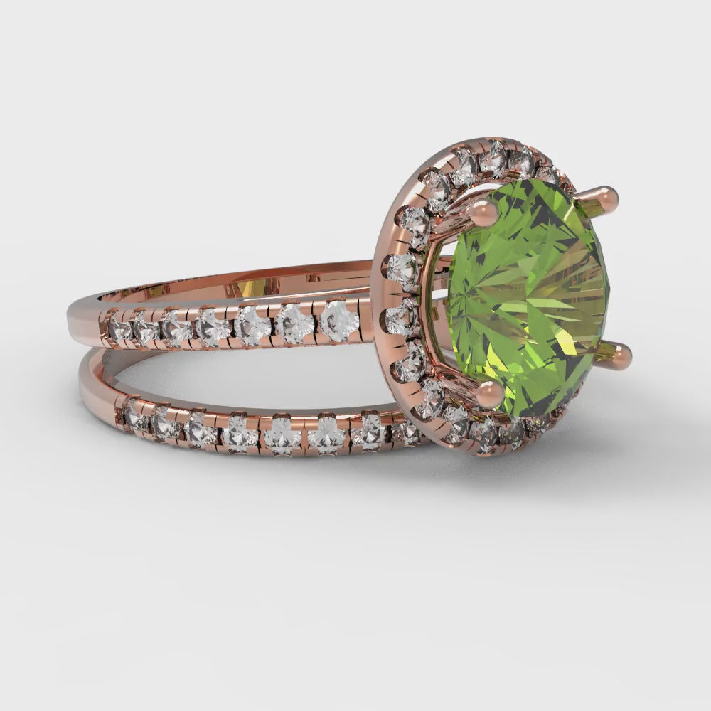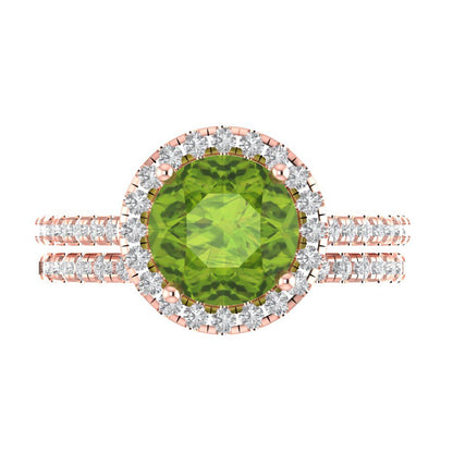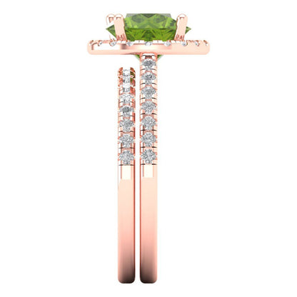 2.52 cttw Round Cut Natural Peridot Bridal Set - Solid Rose Gold Engagement Ring & Wedding Band