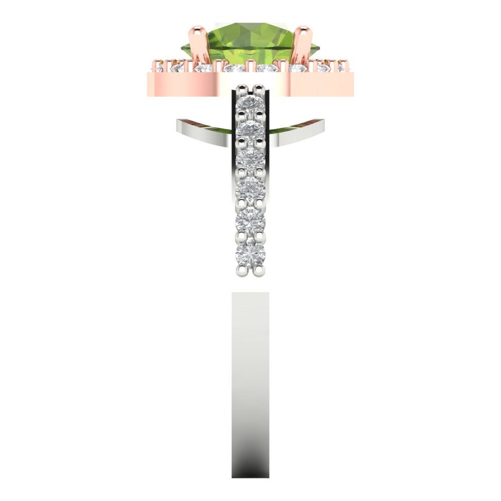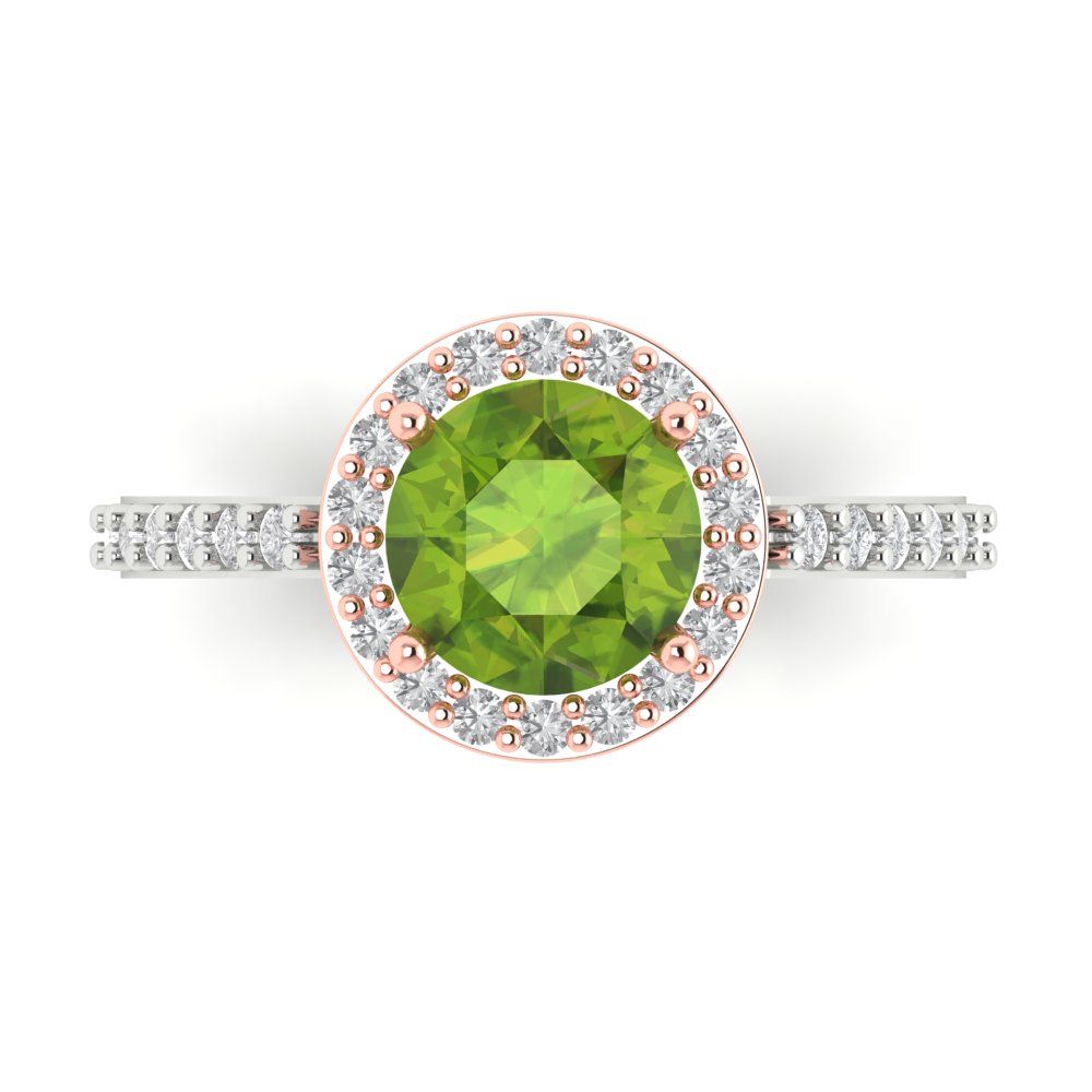 1.86 cttw Natural Peridot Solitaire with Zirconia Simulated Diamond Accents Engagement Ring - Solid Gold (Round Cut,7.5mm)