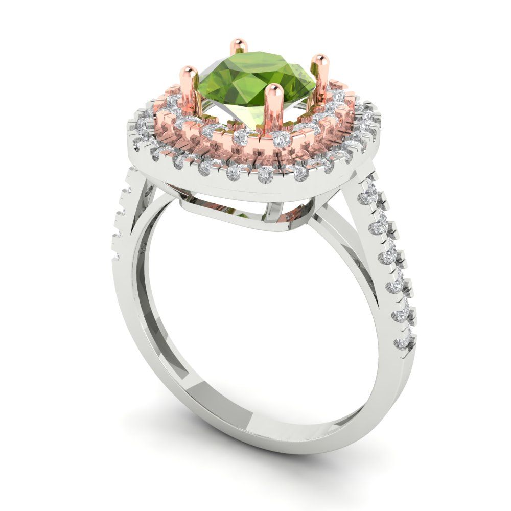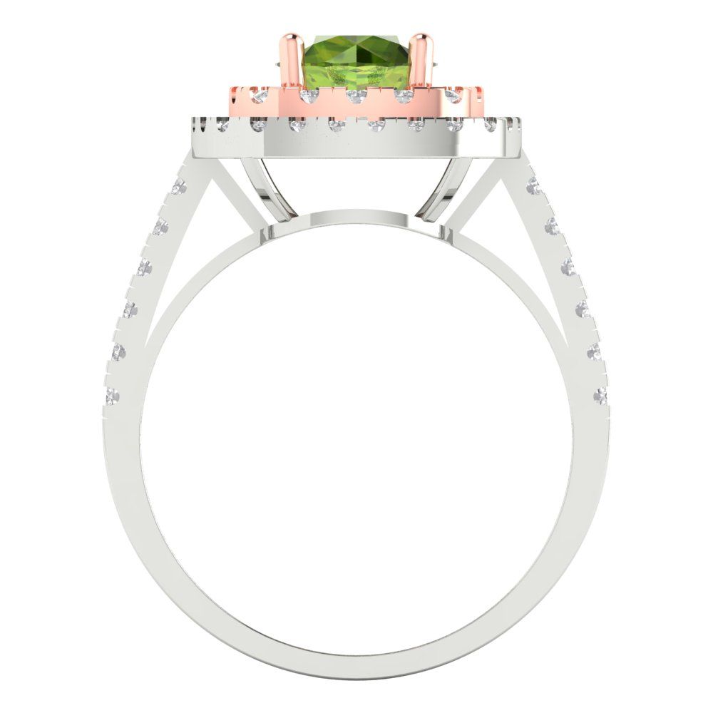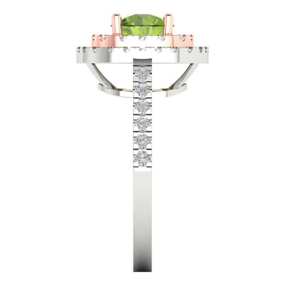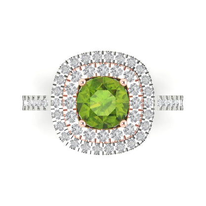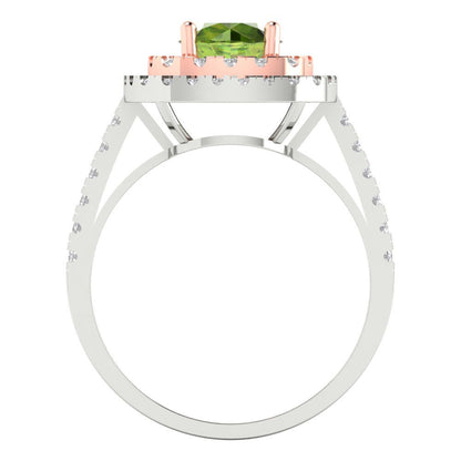 1.615 cttw Natural Peridot Solitaire with Zirconia Simulated Diamond Accents Engagement Ring - Solid Gold (Round Cut,6.5mm)