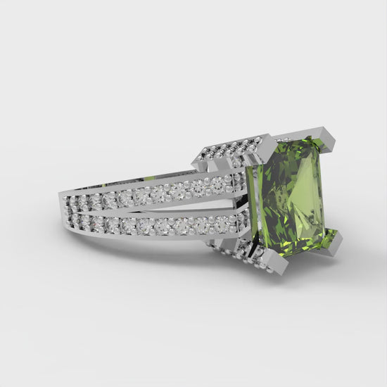2.35 cttw Natural Peridot Solitaire with Zirconia Simulated Diamond Accents Engagement Ring - Solid Gold (Emerald Cut,8x6mm)