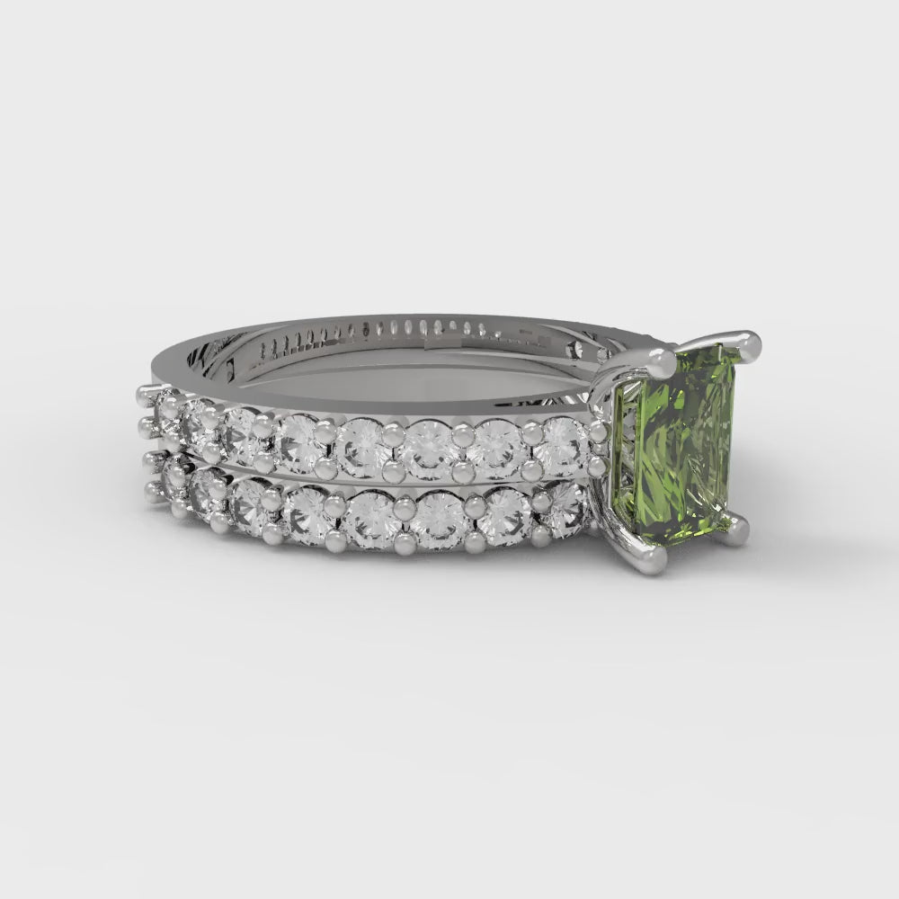 1.325 cttw Emerald Cut Natural Peridot Bridal Set - Solid White Gold Engagement Ring & Wedding Band
