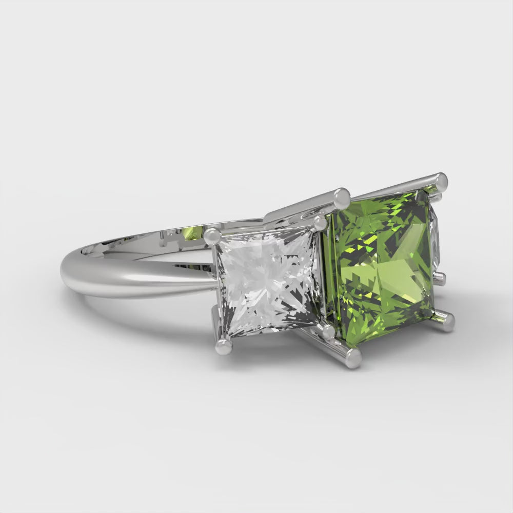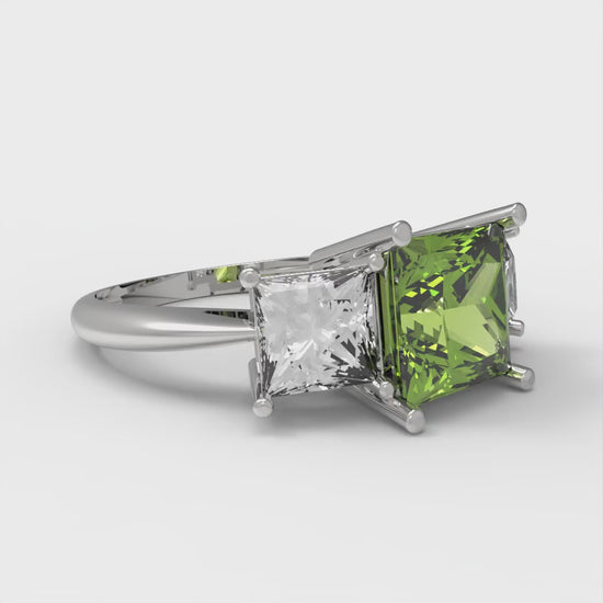 2.5 cttw Natural Peridot Three-Stone Engagement Ring - Solid Gold (Princess Cut,6.5 mm)