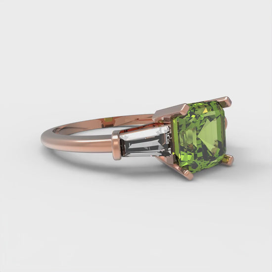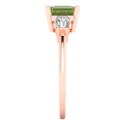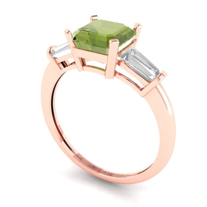 1.62 cttw Natural Peridot Three-Stone Engagement Ring - Solid Gold (Square Emerald Cut,6.5X6.5mm)