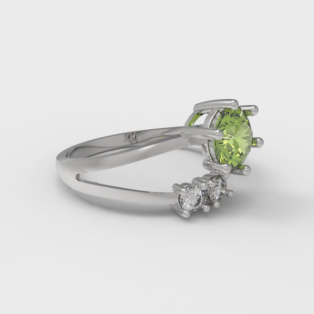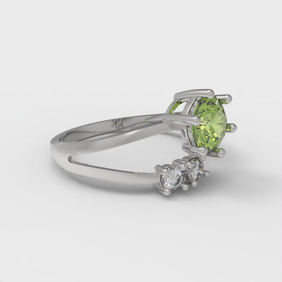 0.87 cttw Natural Peridot Three-Stone Engagement Ring - Solid White Gold (VVS1, Round Cut,6.0mm)