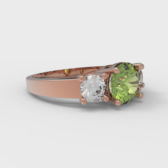 1.5 cttw Natural Peridot Three-Stone Engagement Ring - Solid Gold (Round Cut,6.5mm)