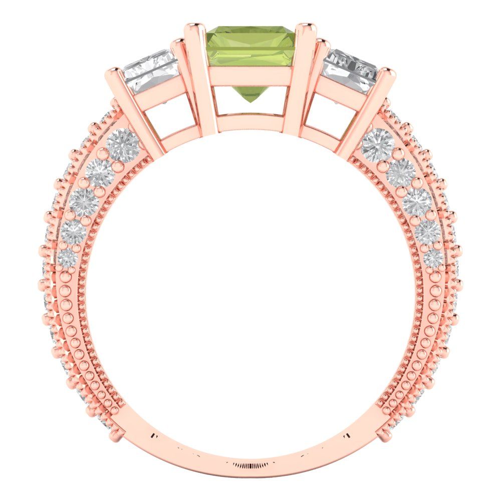 3.61 cttw Natural Peridot Three-Stone Engagement Ring - Solid Gold (Emerald Cut,8x6mm)