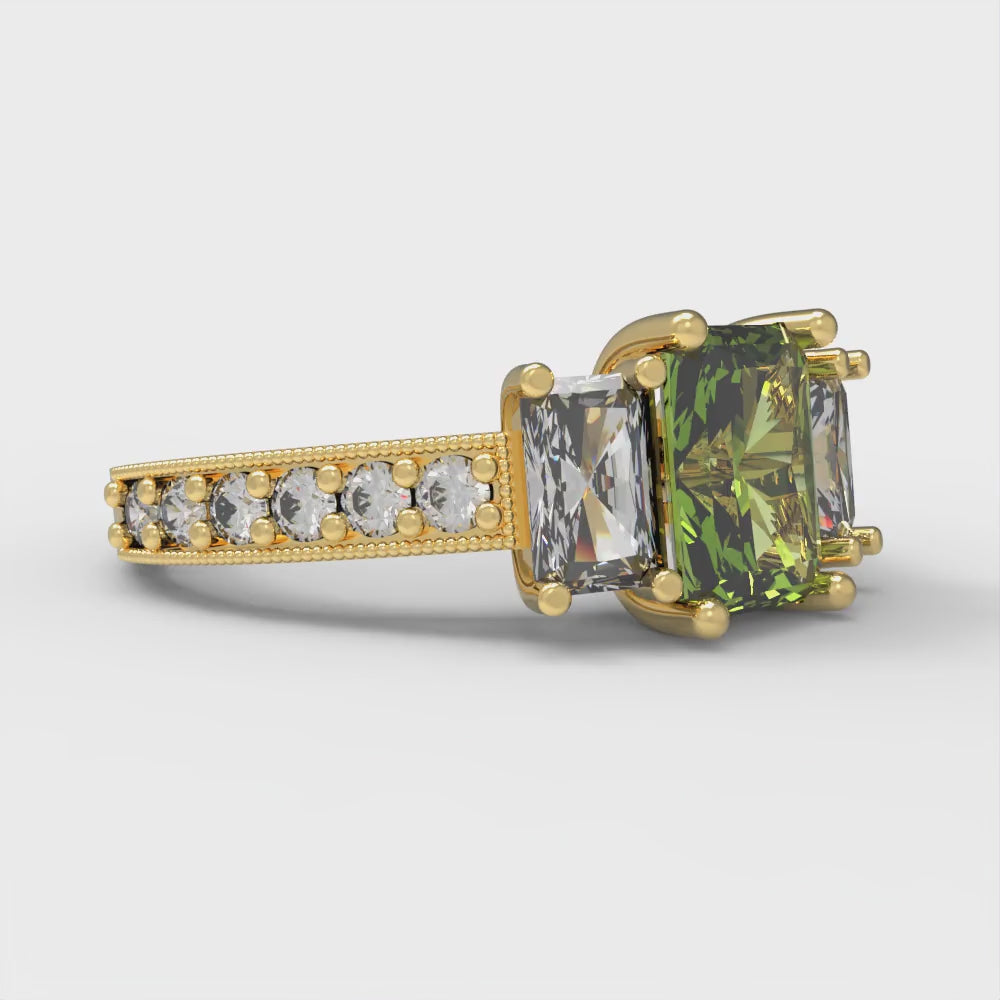 1.88 cttw Natural Peridot Three-Stone Engagement Ring - Solid Gold (Emerald Cut,7x5mm)