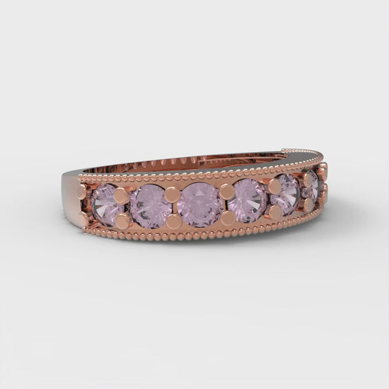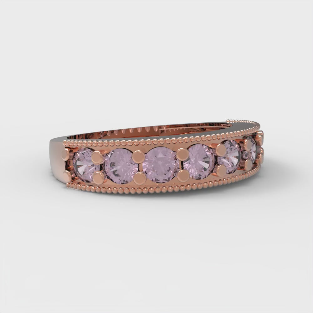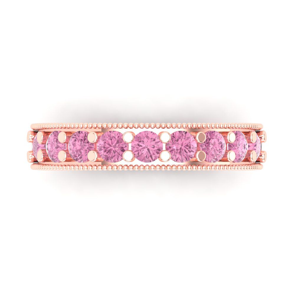 0.81 cttw Simulated Pink Diamond Round Cut Rose Gold Eternity Wedding Band