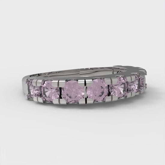 1 cttw Simulated Pink Diamond Round Cut White Gold Eternity Wedding Band
