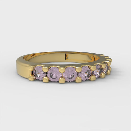 0.63 cttw Simulated Pink Diamond Round Cut Yellow Gold Eternity Wedding Band