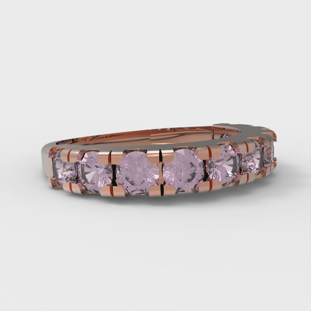 1 cttw Simulated Pink Diamond Round Cut Rose Gold Eternity Wedding Band