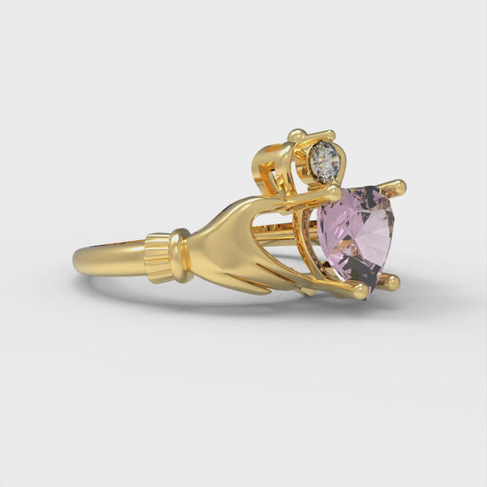 1.06 cttw Zirconia Simulated Pink Diamond Celtic Claddagh Engagement Ring - Solid Gold (VVS1, Heart Cut,6.5mm)
