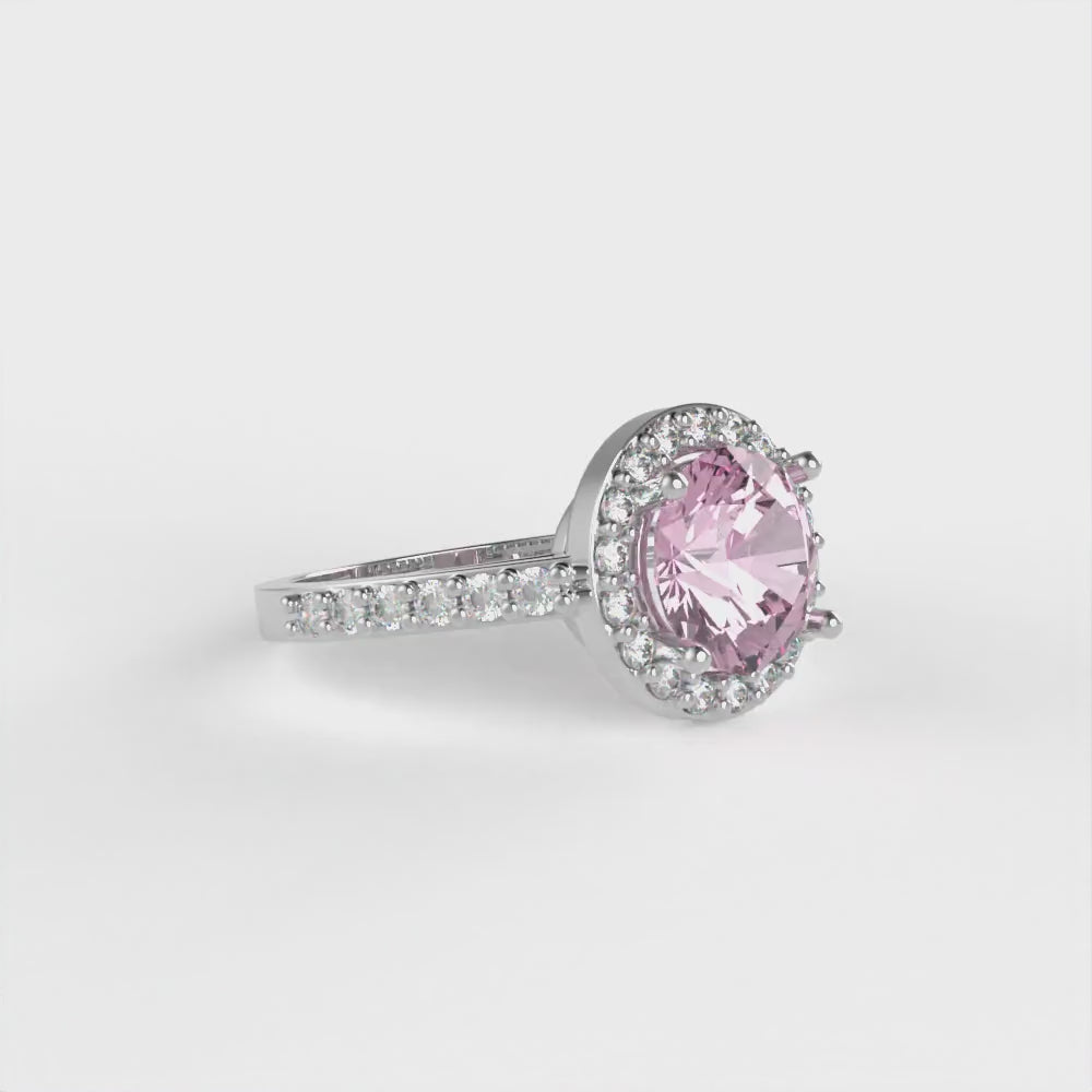 1.86 cttw Zirconia Simulated Pink Diamond Hidden Halo Engagement Ring - Solid Gold (VVS1, Round Cut,7.5mm)