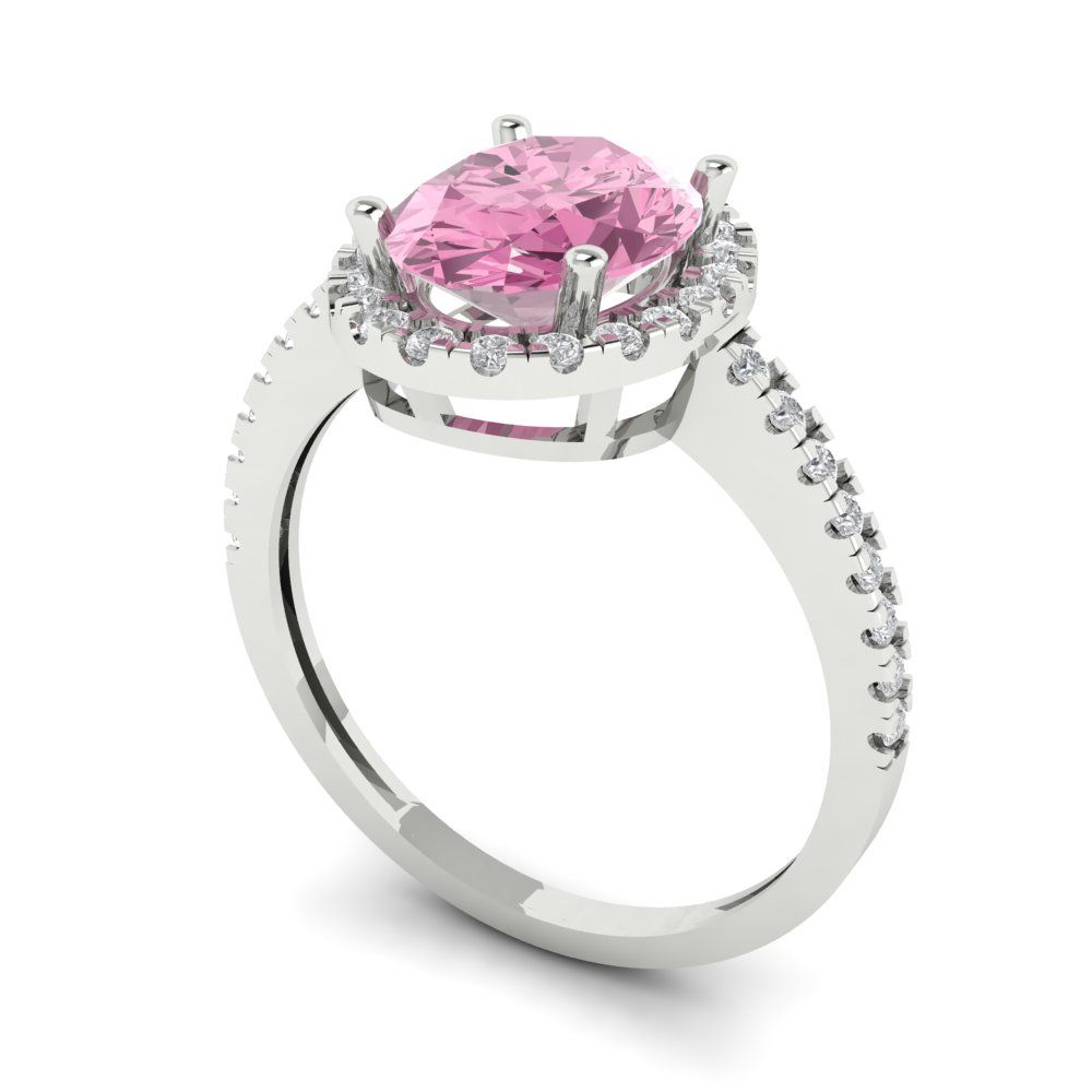2.27 cttw Zirconia Simulated Pink Diamond Hidden Halo Engagement Ring - Solid Gold (VVS1, Oval Cut,9X7mm)