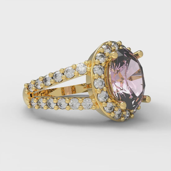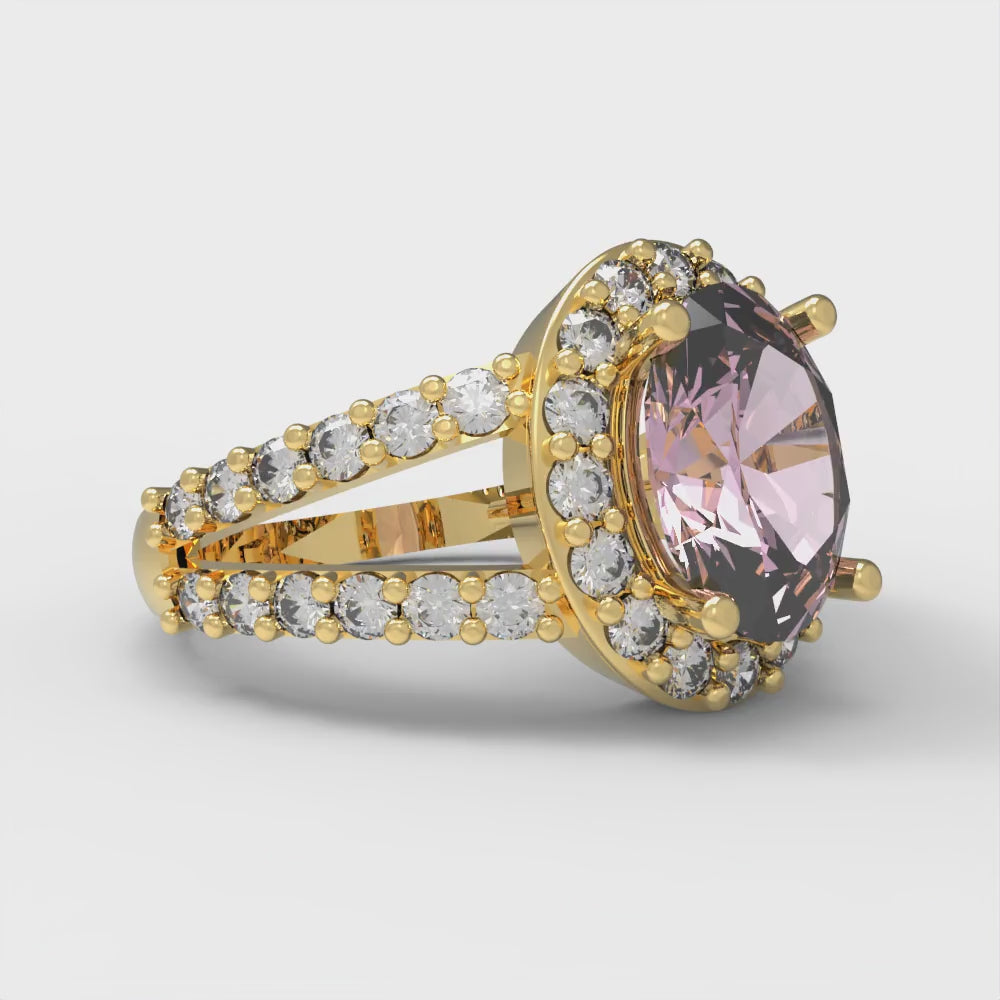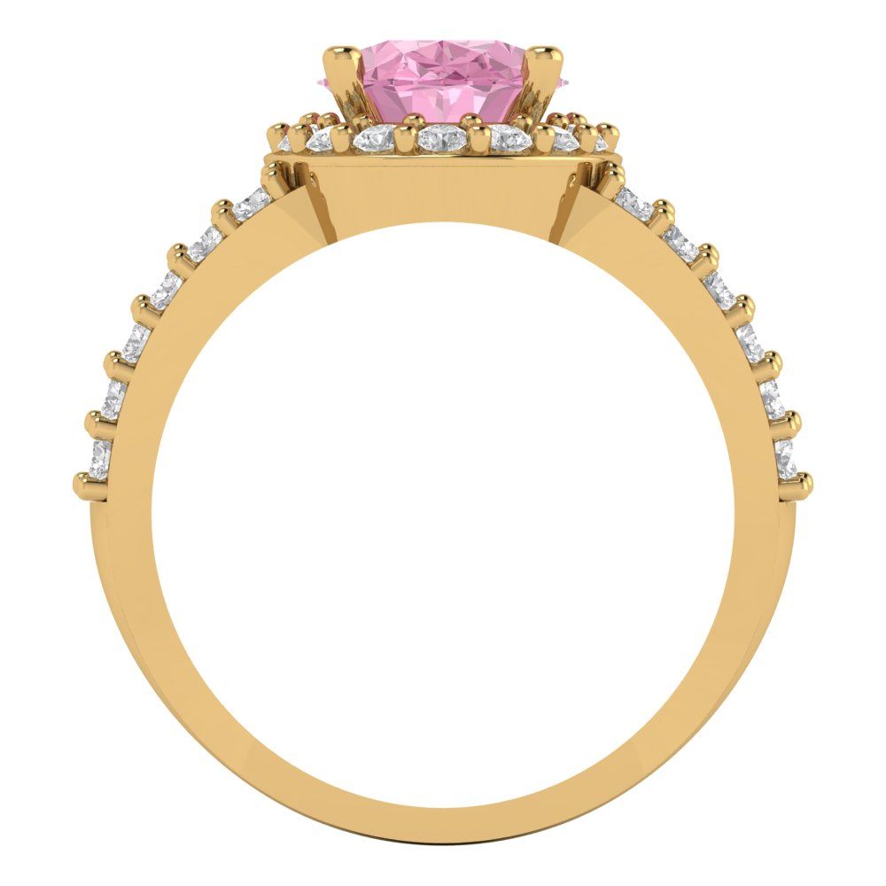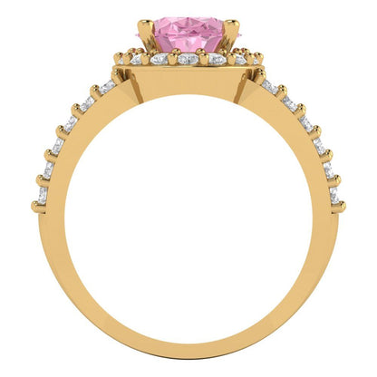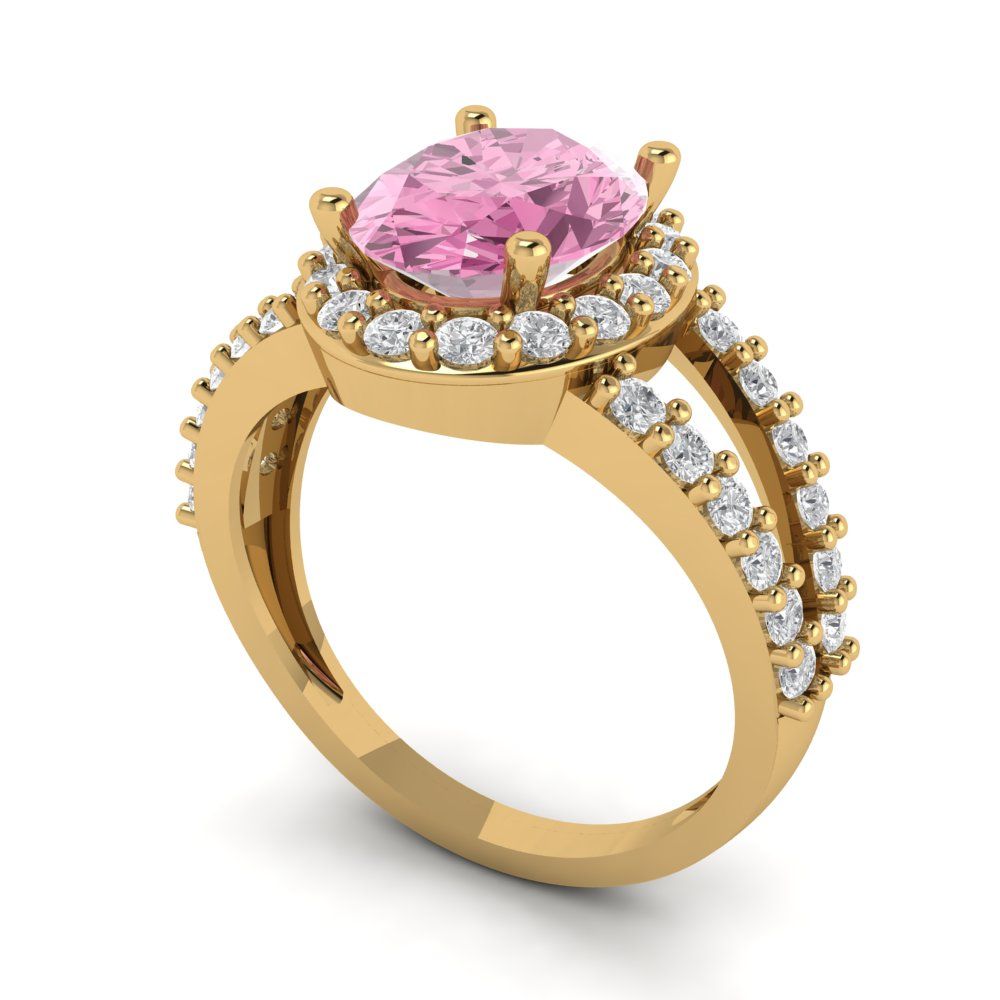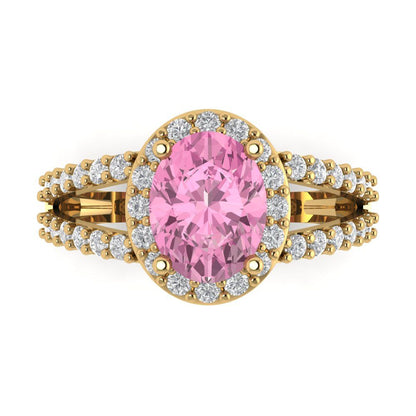 2.6 cttw Zirconia Simulated Pink Diamond Hidden Halo Engagement Ring - Solid Gold (VVS1, Oval Cut,9x7mm)
