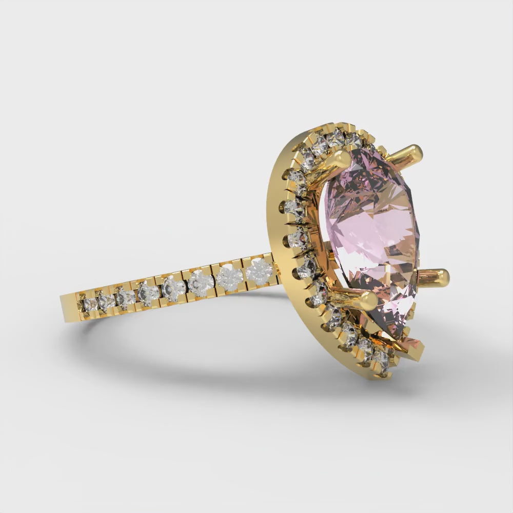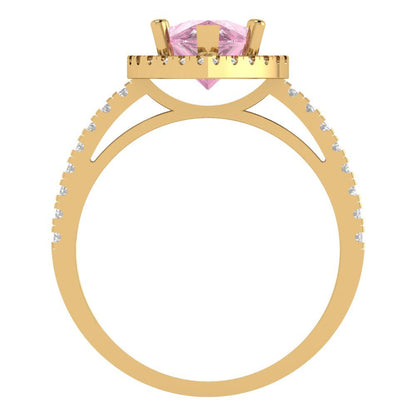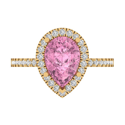 2.38 cttw Zirconia Simulated Pink Diamond Hidden Halo Engagement Ring - Solid Gold (VVS1, Pear Cut,10x7mm )