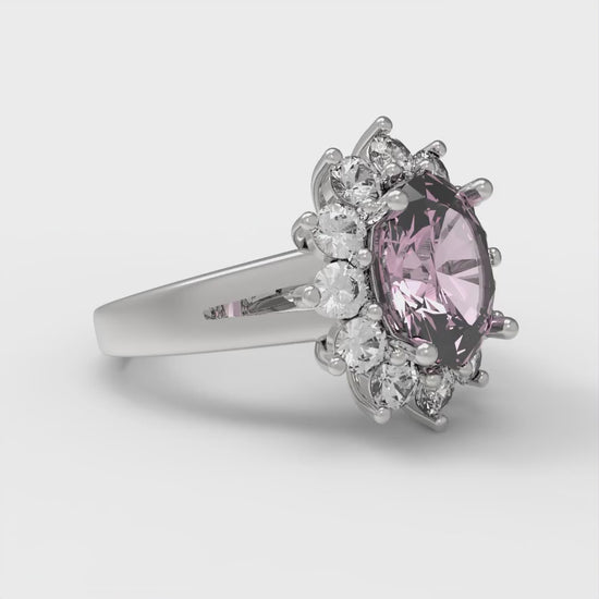 2.72 cttw Zirconia Simulated Pink Diamond Hidden Halo Engagement Ring - Solid Gold (VVS1, Oval Cut,9x7mm)