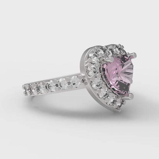 2.03 cttw Zirconia Simulated Pink Diamond Hidden Halo Engagement Ring - Solid Gold (VVS1, Heart Cut,7.0mm)