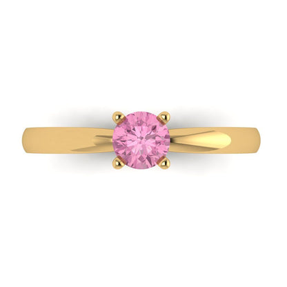 0.5 cttw Zirconia Simulated Pink Diamond Solitaire Engagement Ring - Solid Gold (VVS1, Round Cut,5.0mm)