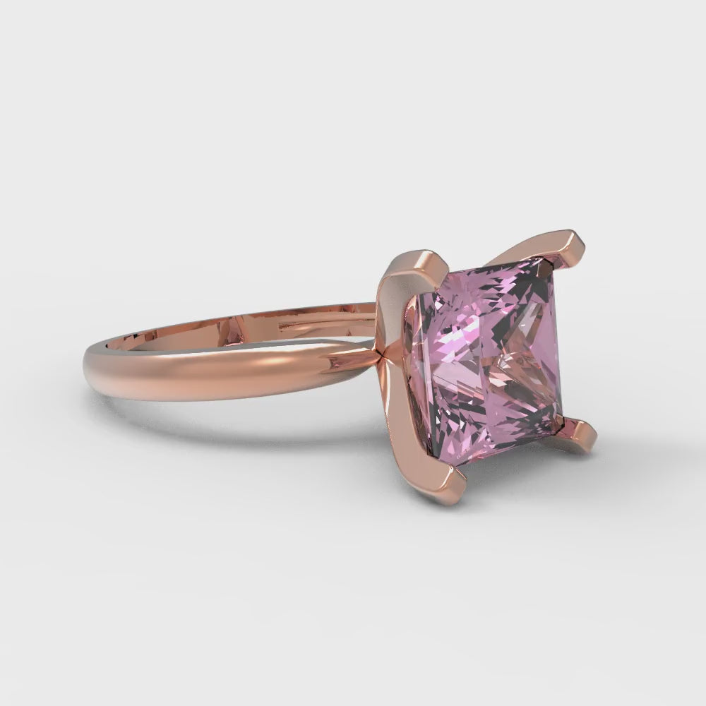 3 cttw Zirconia Simulated Pink Diamond Solitaire Engagement Ring - Solid Gold (VVS1, Princess Cut,8.0mm)