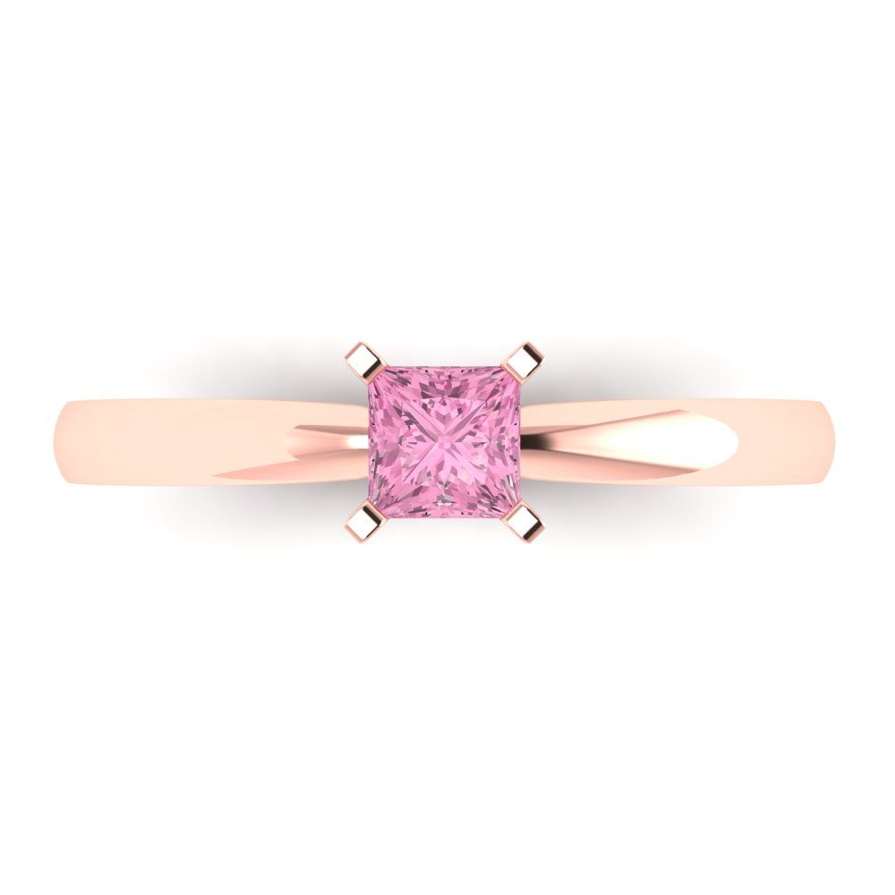 0.5 cttw Zirconia Simulated Pink Diamond Solitaire Engagement Ring - Solid Gold (VVS1, Princess Cut,4.5mm)