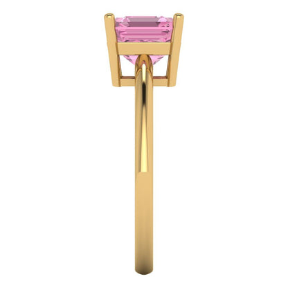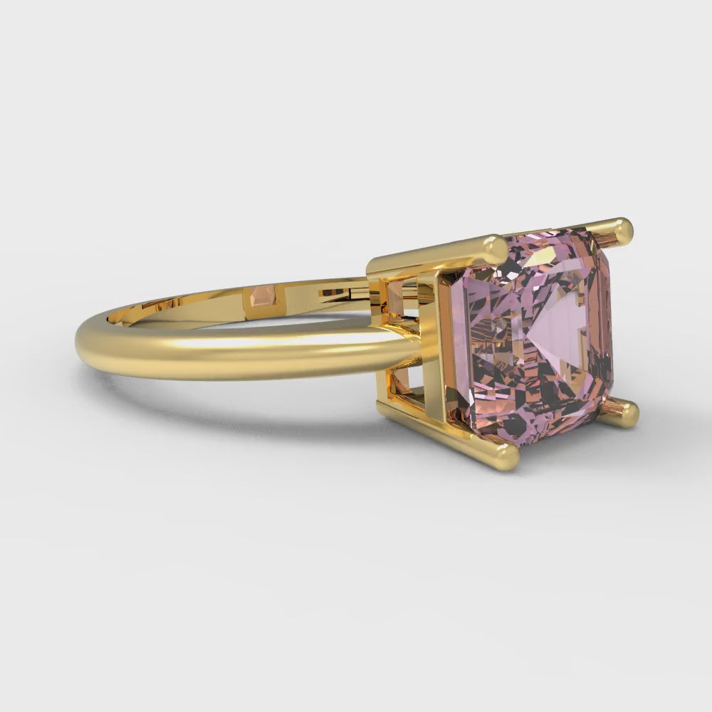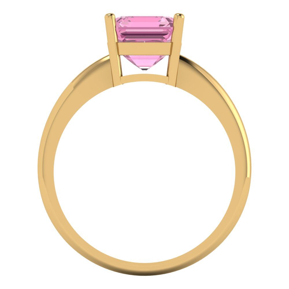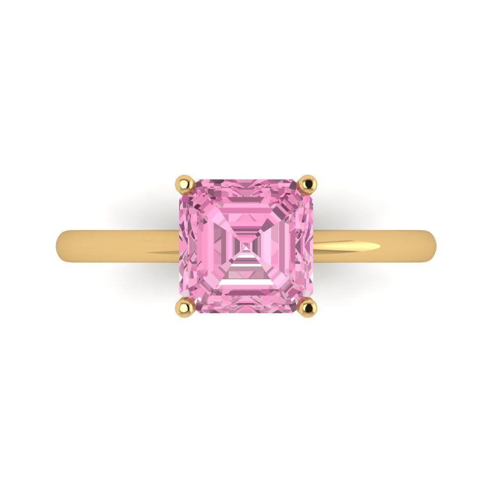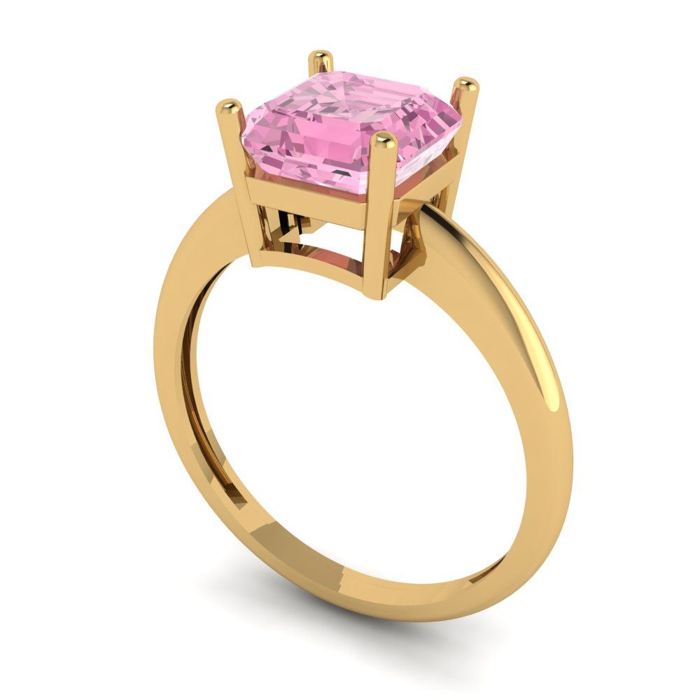 2 cttw Zirconia Simulated Pink Diamond Solitaire Engagement Ring - Solid Gold (VVS1, Asscher Cut,7.0mm)