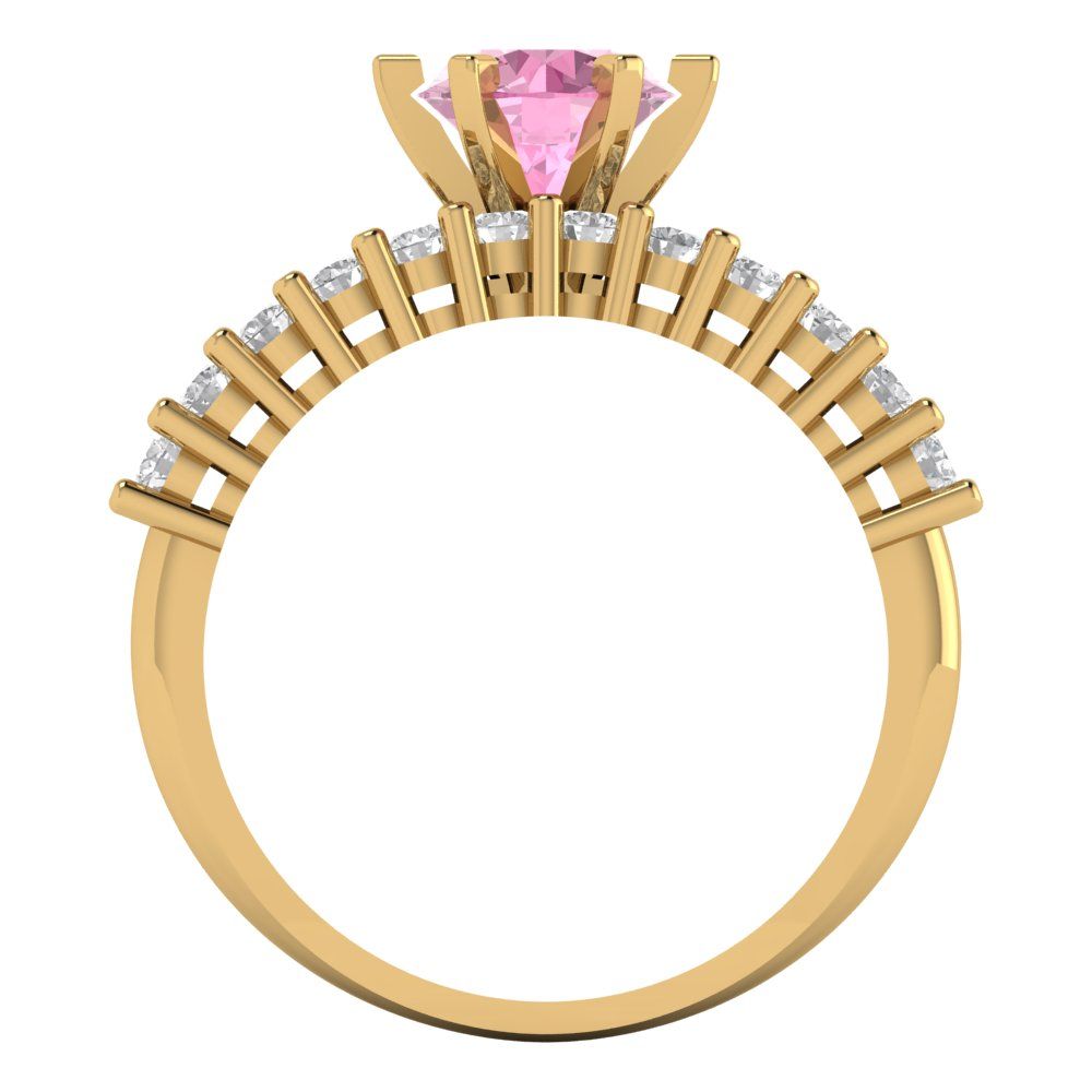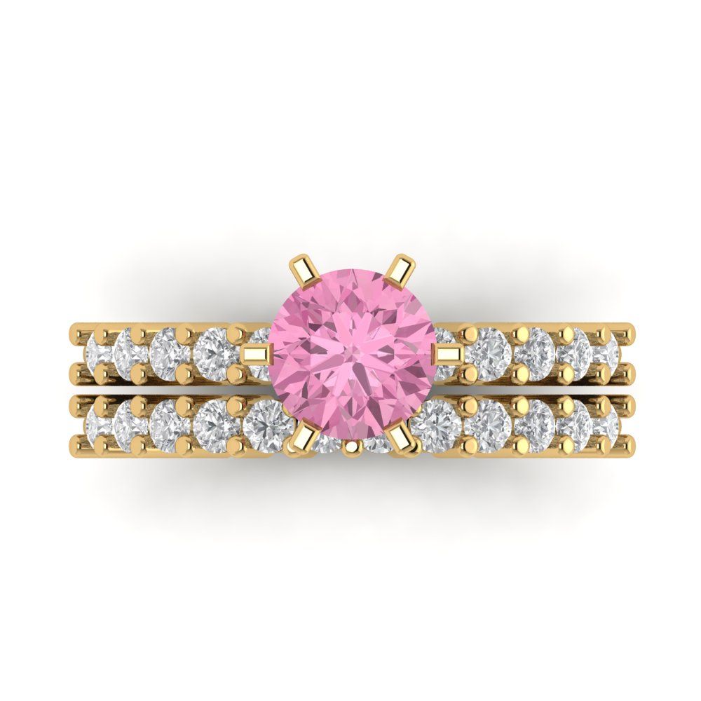 1.66 cttw Round Cut Simulated Pink Diamond Bridal Set - Solid Yellow Gold Engagement Ring & Wedding Band