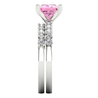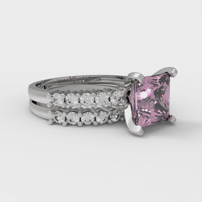 2.63 cttw Princess Cut Simulated Pink Diamond Bridal Set - Solid White Gold Engagement Ring & Wedding Band