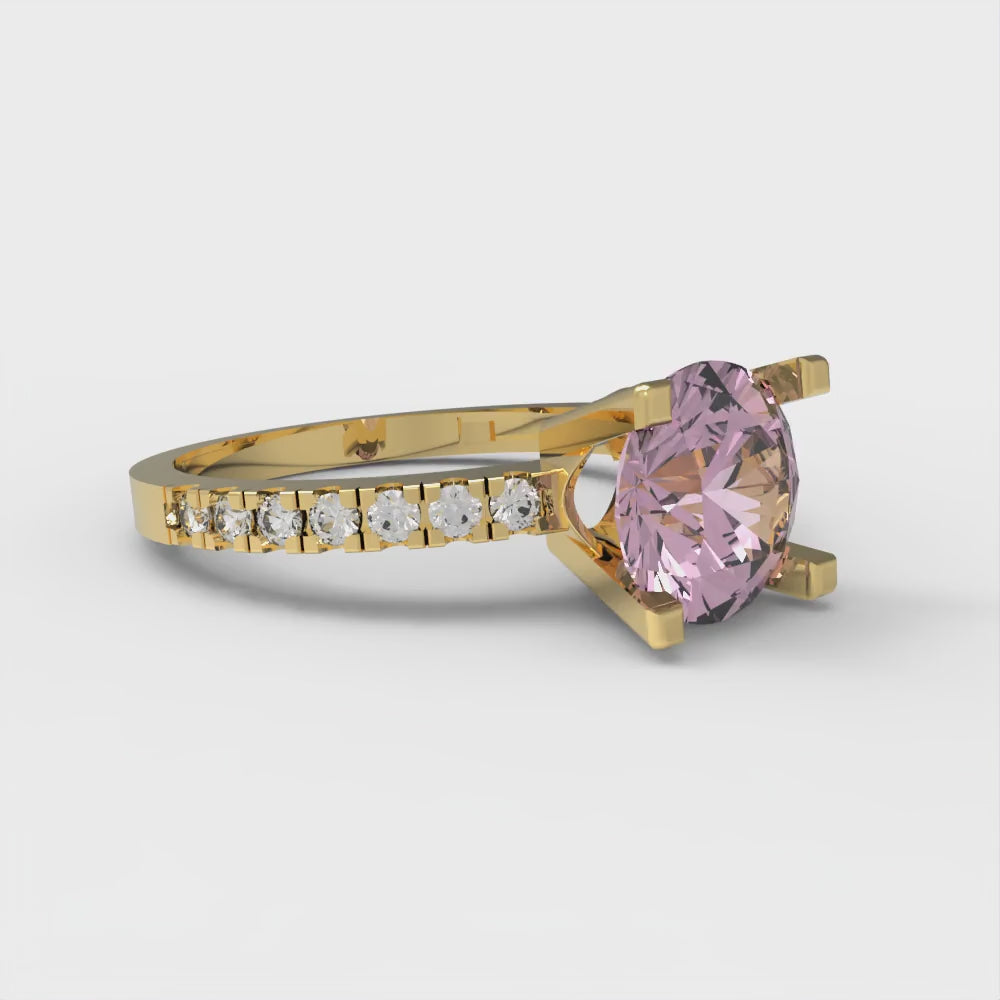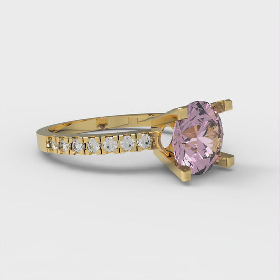 1.71 cttw Zirconia Simulated Pink Diamond Solitaire with Zirconia Simulated Diamond Accents Engagement Ring - Solid Gold (VVS1, Round Cut,7.5mm)