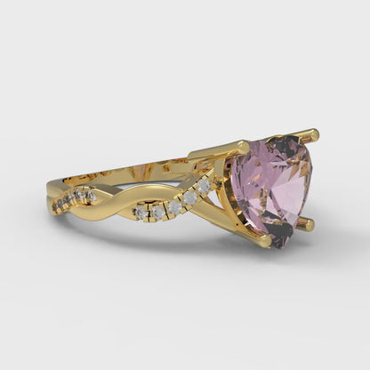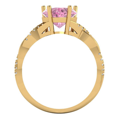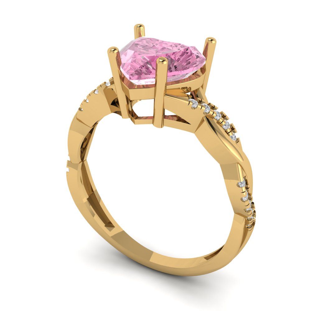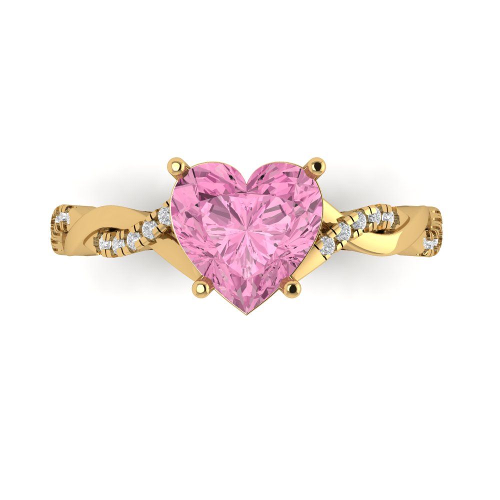 2.1 cttw Zirconia Simulated Pink Diamond Solitaire with Zirconia Simulated Diamond Accents Engagement Ring - Solid Gold (VVS1, Heart Cut,8mm)