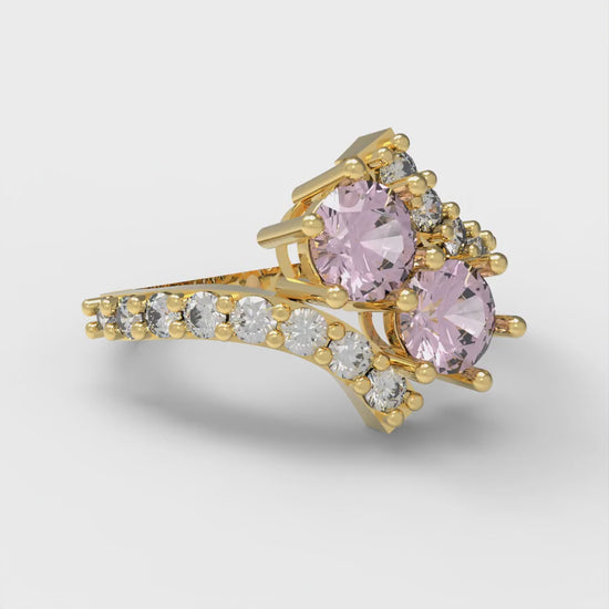 1.48 cttw Zirconia Simulated Pink Diamond Solitaire with Zirconia Simulated Diamond Accents Engagement Ring - Solid Gold (VVS1, Round Cut,5mm)