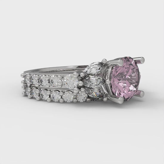 2.94 cttw Round Cut Simulated Pink Diamond Bridal Set - Solid White Gold Engagement Ring & Wedding Band