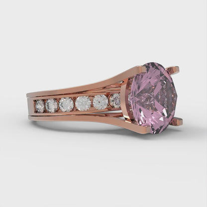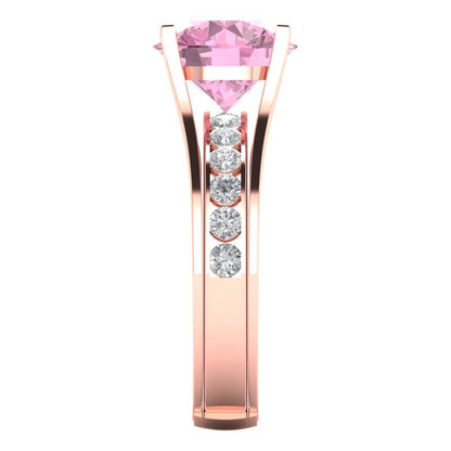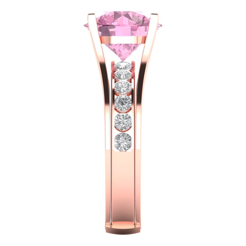3.39 cttw Round Cut Simulated Pink Diamond Bridal Set - Solid Rose Gold Engagement Ring & Wedding Band