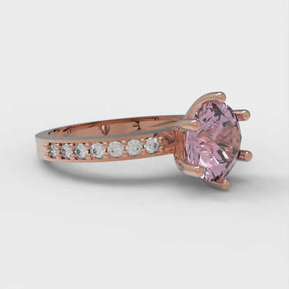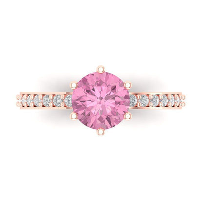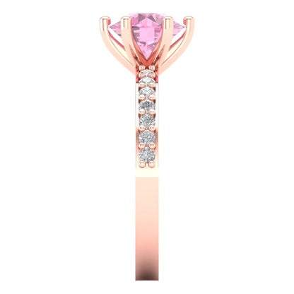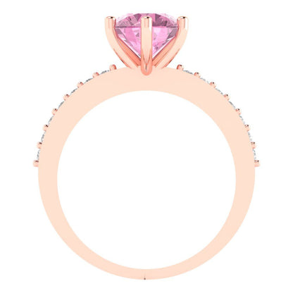 1.71 cttw Zirconia Simulated Pink Diamond Solitaire with Zirconia Simulated Diamond Accents Engagement Ring - Solid Gold (VVS1, Round Cut,7.5mm)