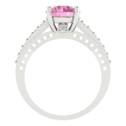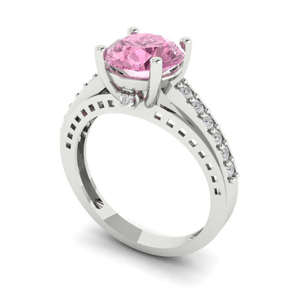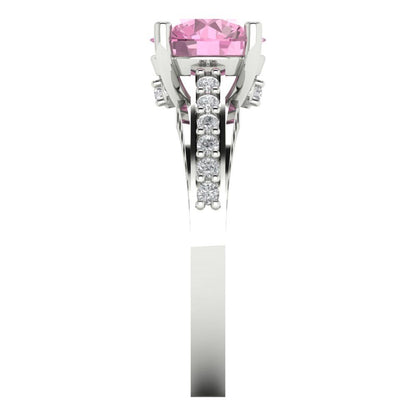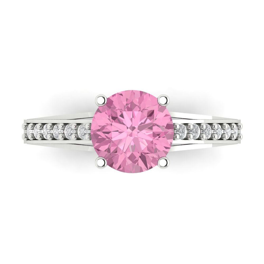 2.21 cttw Zirconia Simulated Pink Diamond Solitaire with Zirconia Simulated Diamond Accents Engagement Ring - Solid Gold (VVS1, Round Cut,8.0mm)