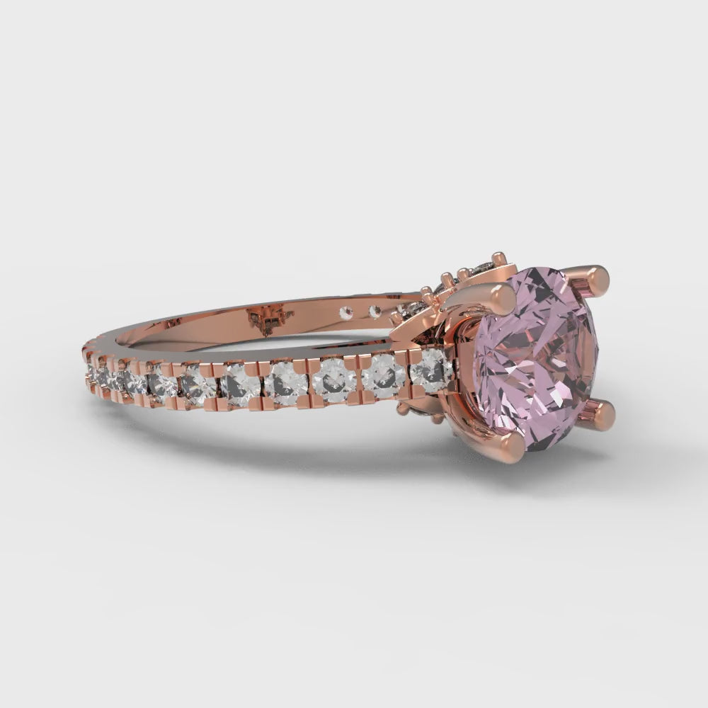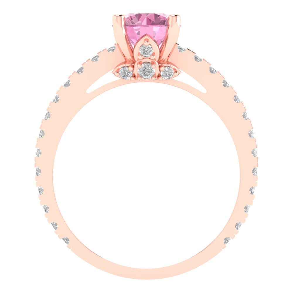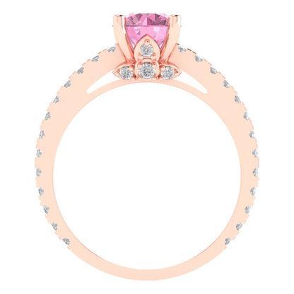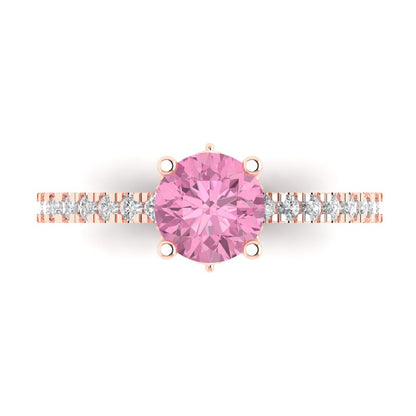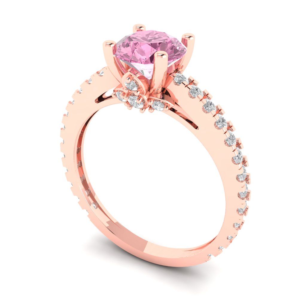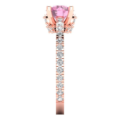 1.465 cttw Zirconia Simulated Pink Diamond Solitaire with Zirconia Simulated Diamond Accents Engagement Ring - Solid Gold (VVS1, Round Cut,6.5mm)