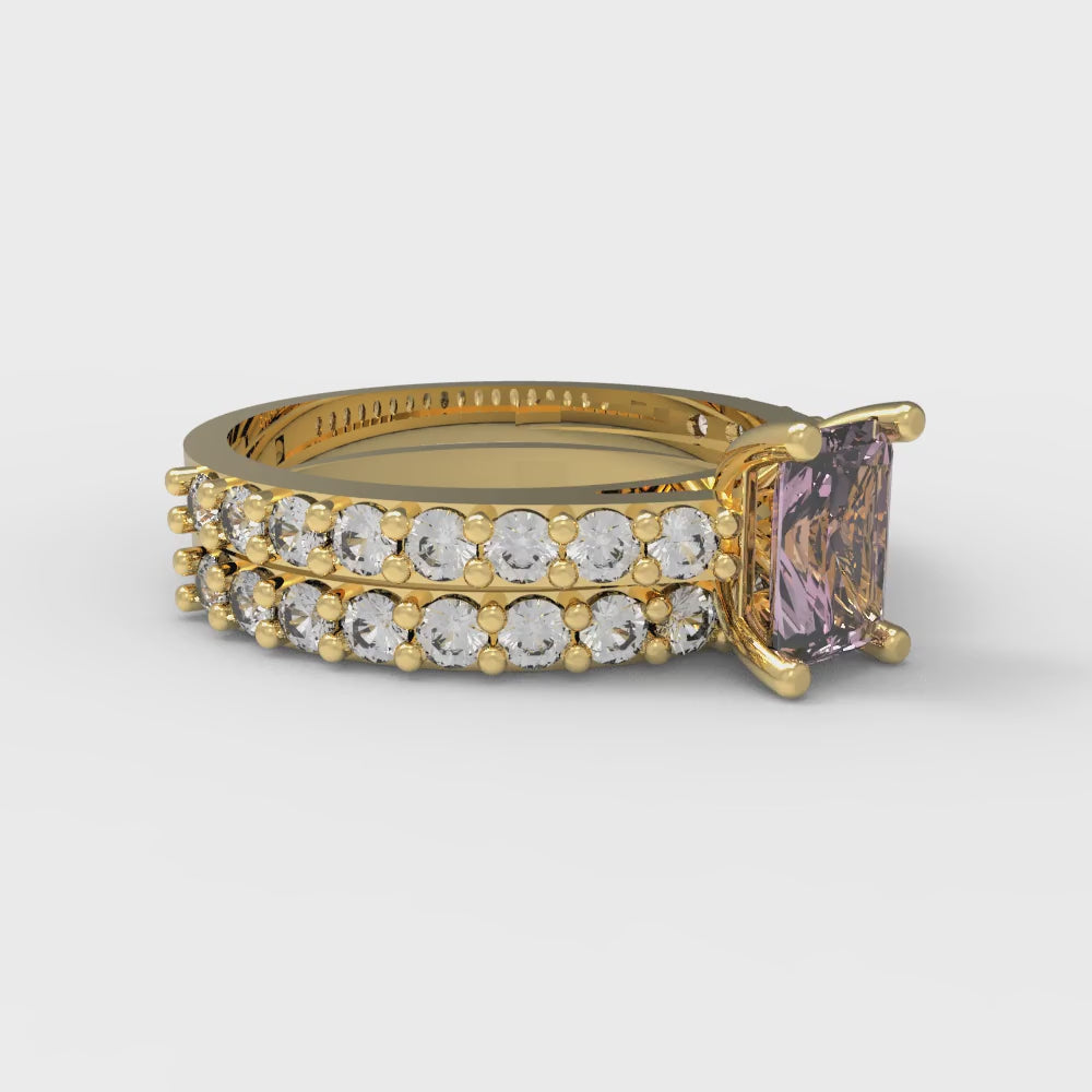 1.325 cttw Emerald Cut Simulated Pink Diamond Bridal Set - Solid Yellow Gold Engagement Ring & Wedding Band