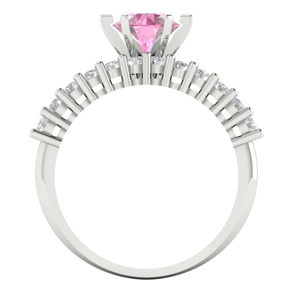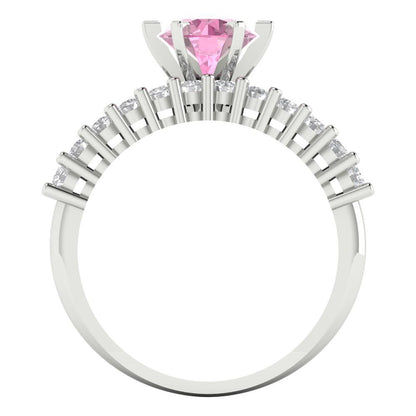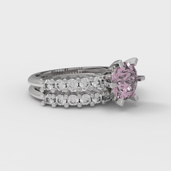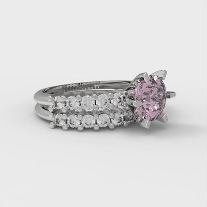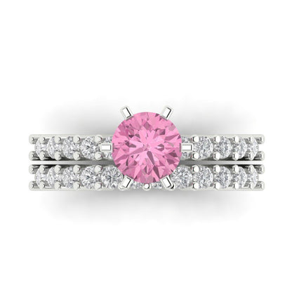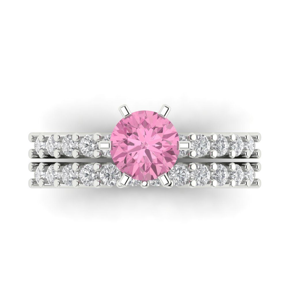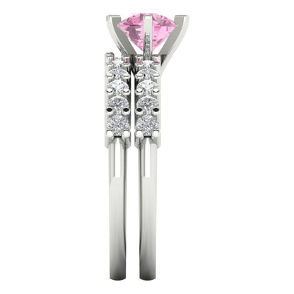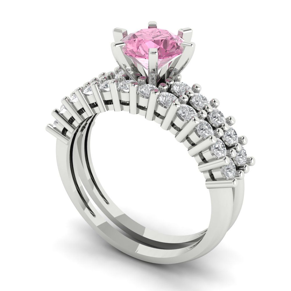 1.66 cttw Round Cut Simulated Pink Diamond Bridal Set - Solid White Gold Engagement Ring & Wedding Band