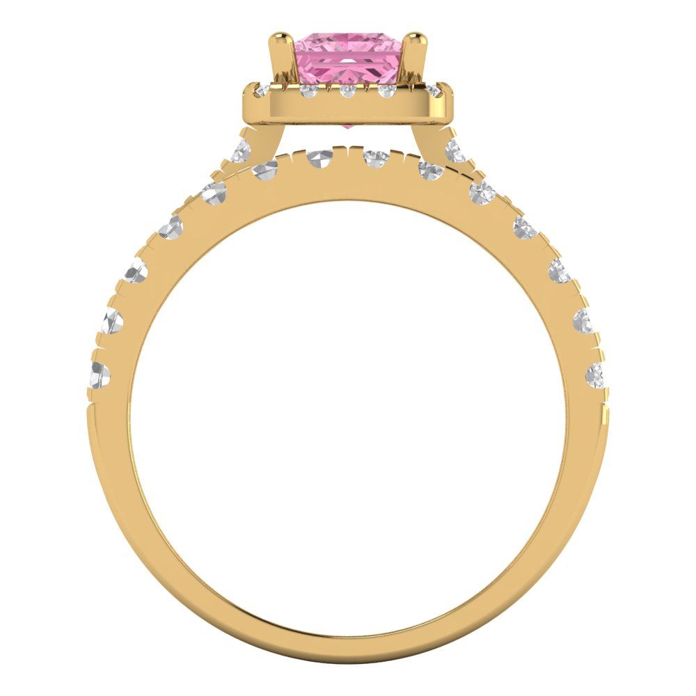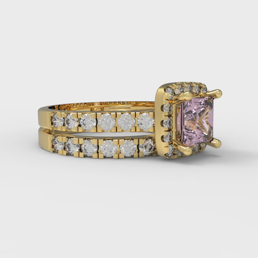 1.56 cttw Princess Cut Simulated Pink Diamond Bridal Set - Solid Yellow Gold Engagement Ring & Wedding Band