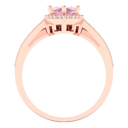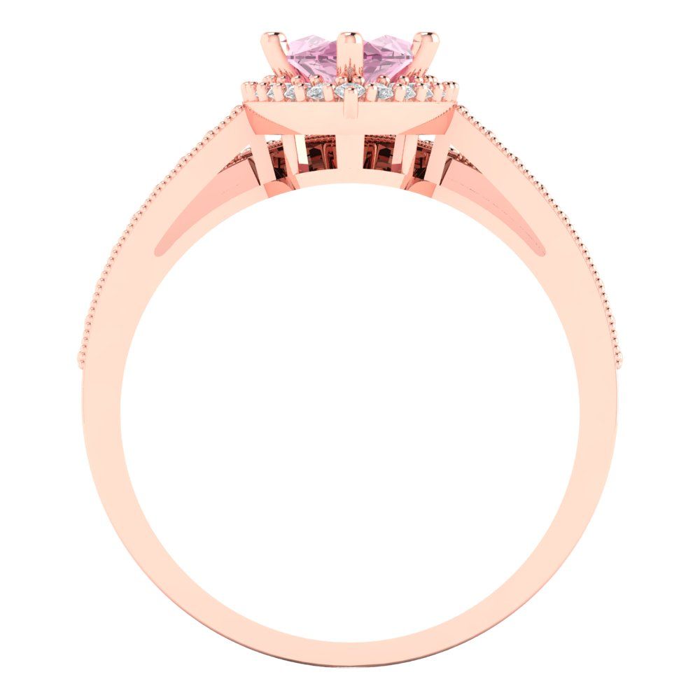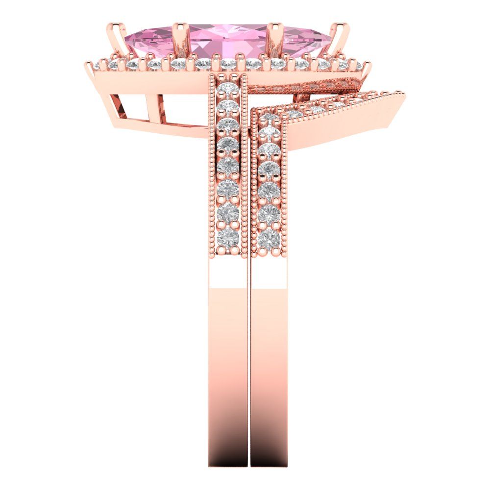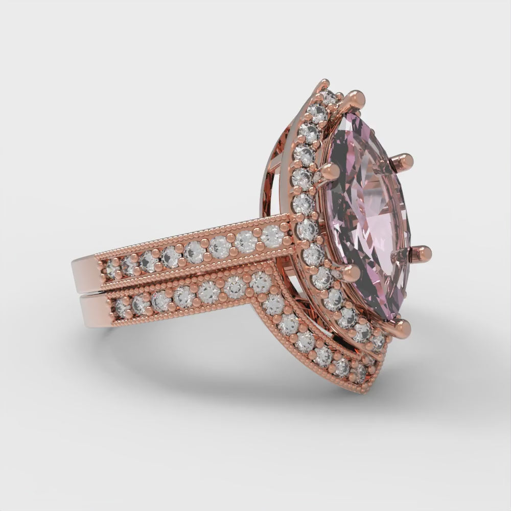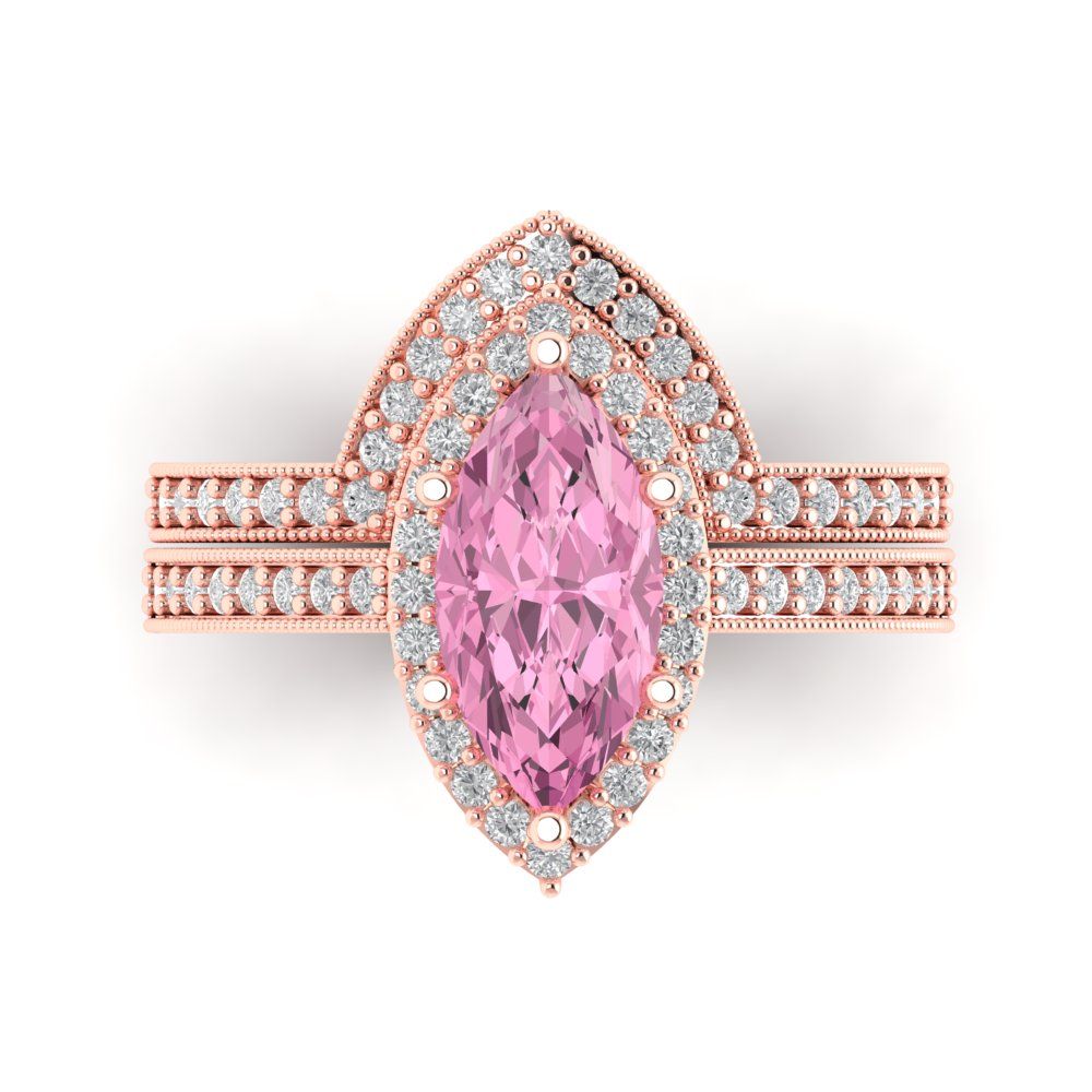2.4875 cttw Marquise Cut Simulated Pink Diamond Bridal Set - Solid Rose Gold Engagement Ring & Wedding Band