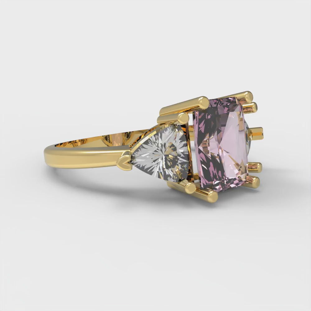 2.82 cttw Zirconia Simulated Pink Diamond Three-Stone Engagement Ring - Solid Gold (VVS1, Emerald Cut,8x6mm)