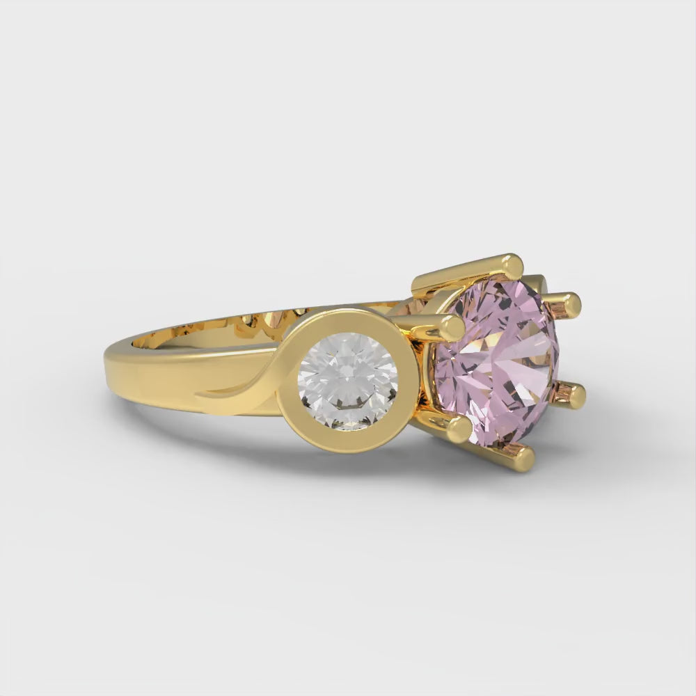 1.72 cttw Zirconia Simulated Pink Diamond Three-Stone Engagement Ring - Solid Gold (VVS1, Round Cut,6.5mm)