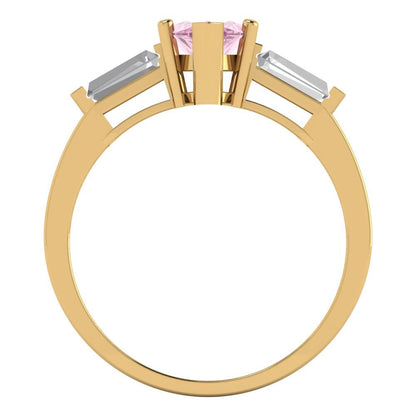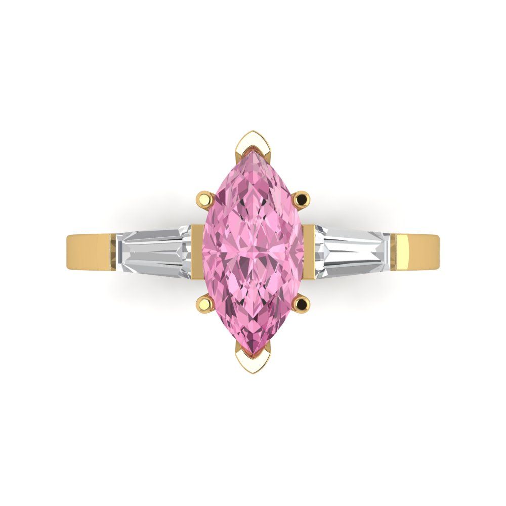 2 cttw Zirconia Simulated Pink Diamond Three-Stone Engagement Ring - Solid Gold (VVS1, Marquise Cut,11x5.5mm)