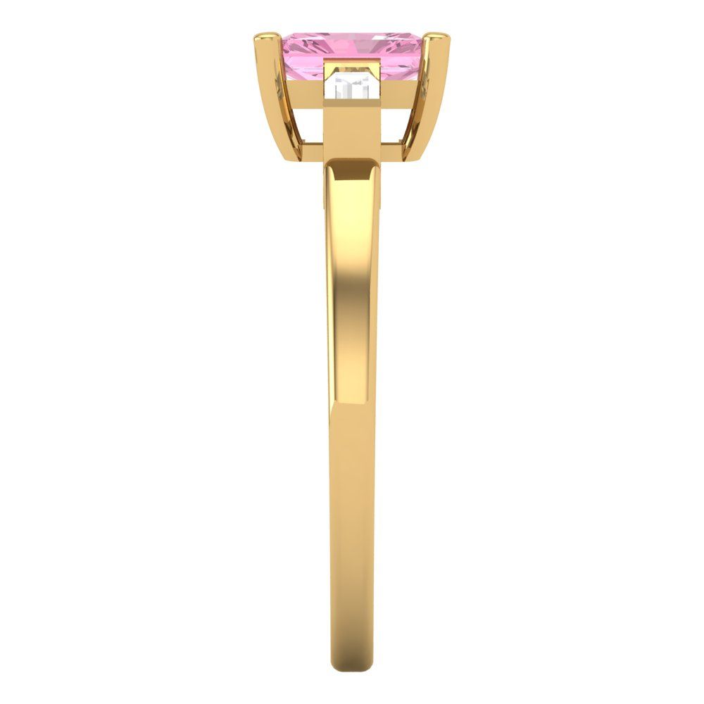 0.8 cttw Zirconia Simulated Pink Diamond Three-Stone Engagement Ring - Solid Gold (VVS1, Emerald Cut,6x4mm)