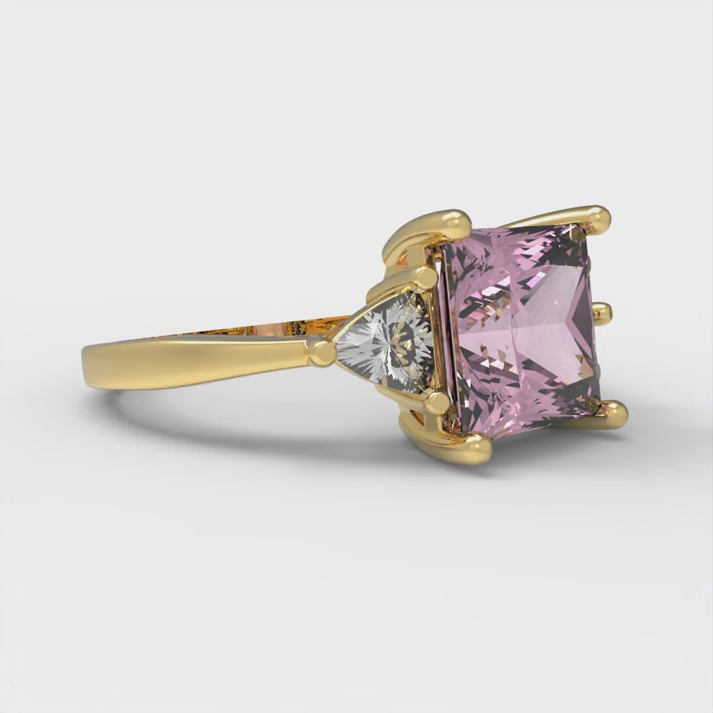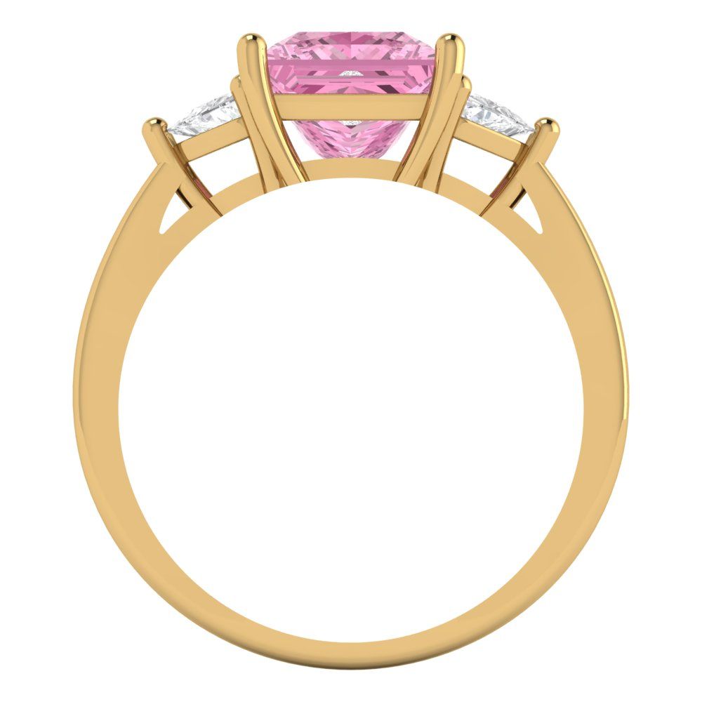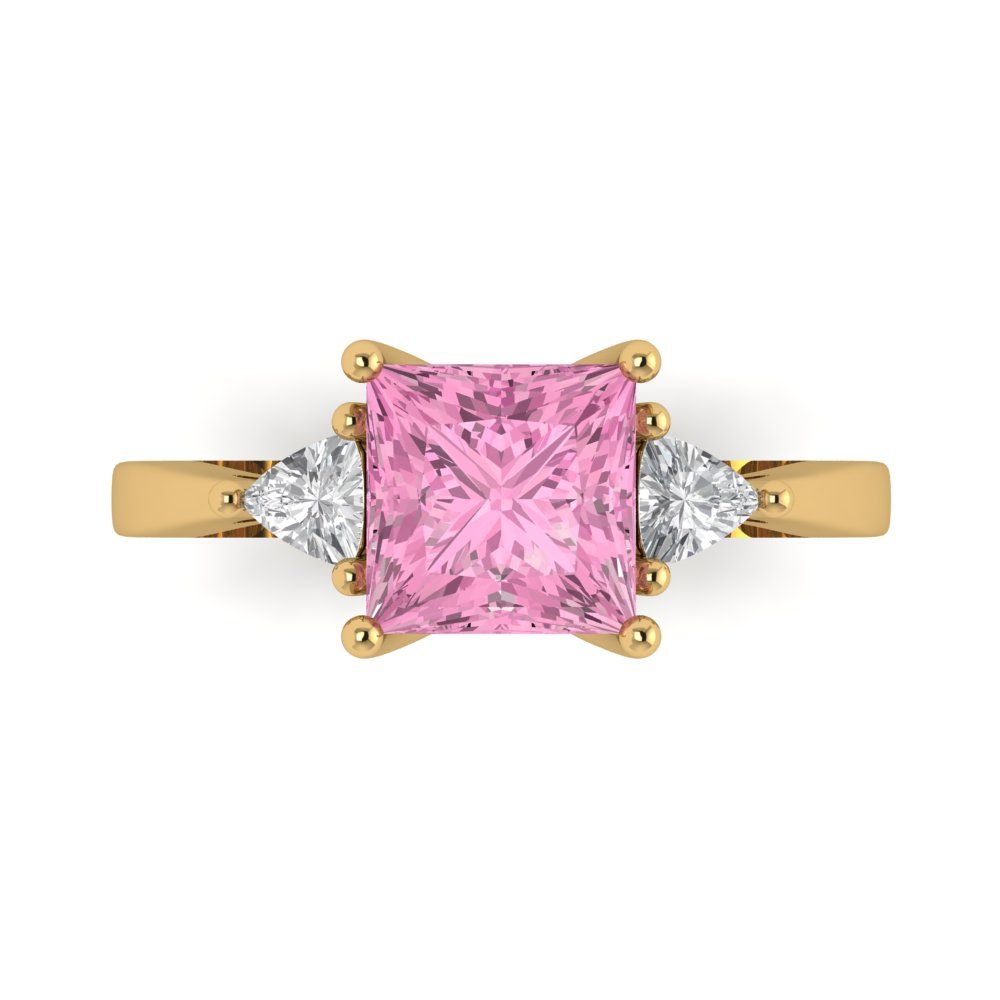 2.32 cttw Zirconia Simulated Pink Diamond Three-Stone Engagement Ring - Solid Gold (VVS1, Princess Cut,7.0mm)