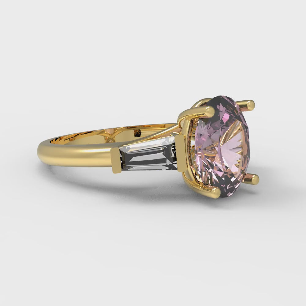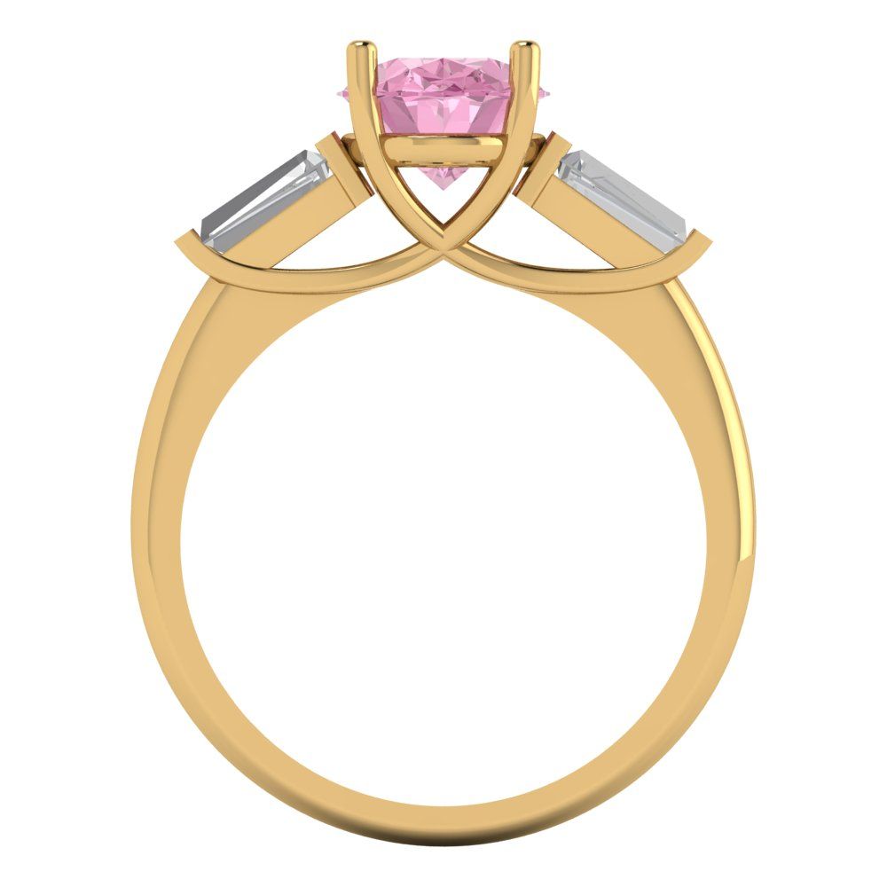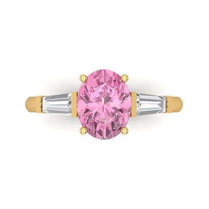2.5 cttw Zirconia Simulated Pink Diamond Three-Stone Engagement Ring - Solid Gold (VVS1, Oval Cut,9x7mm)