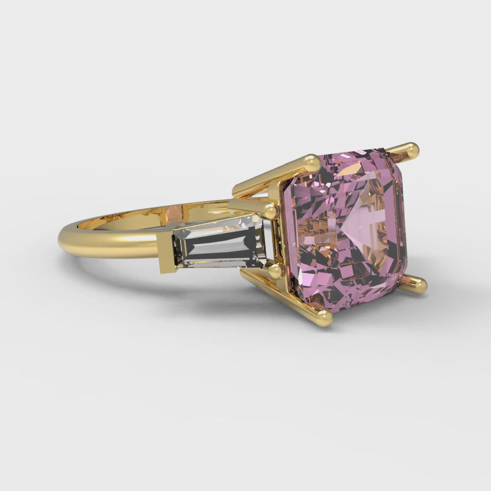 3 cttw Zirconia Simulated Pink Diamond Three-Stone Engagement Ring - Solid Gold (VVS1, Asscher Cut,8.0mm)